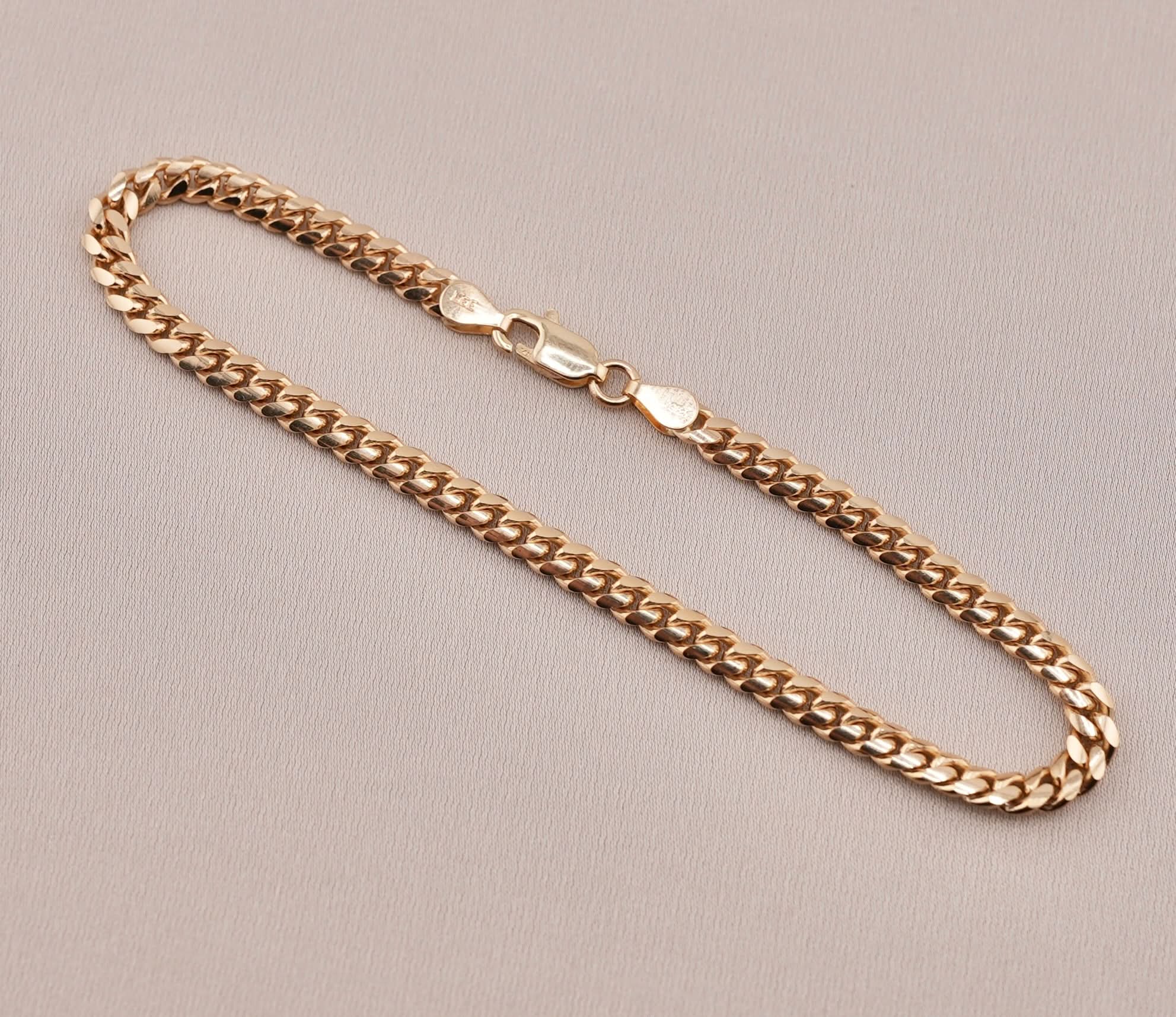 14K Gold Solid Miami Cuban Bracelet 4mm