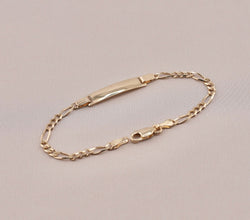 14K Gold Solid Figaro Baby ID Bracelet