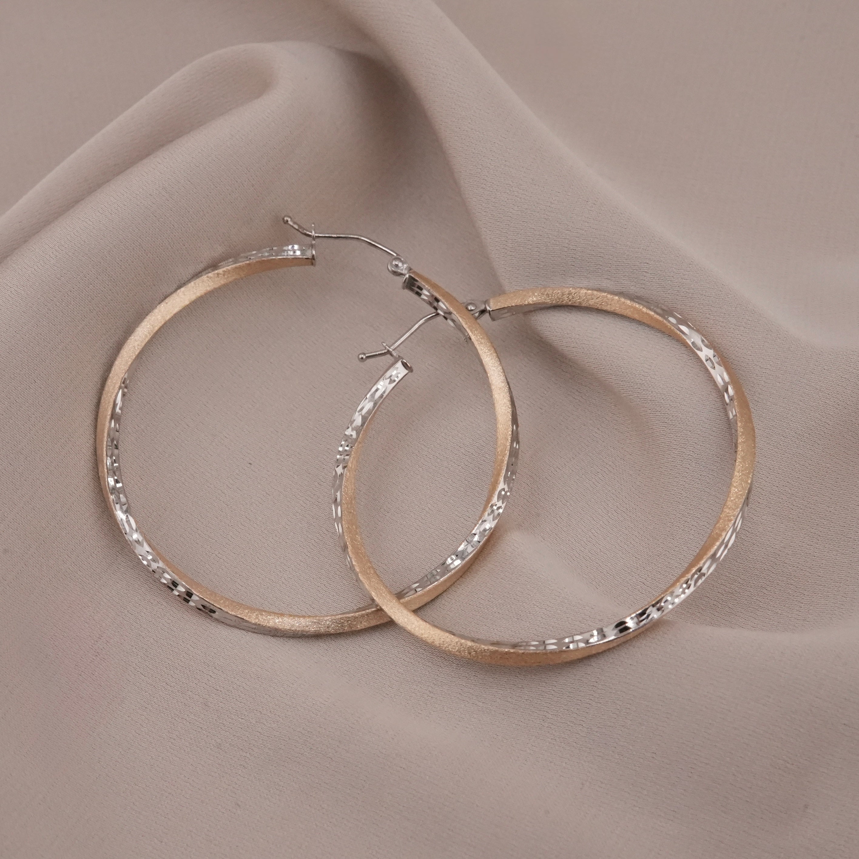14k Gold Hollow Small 3 Tone Hoop Earrings