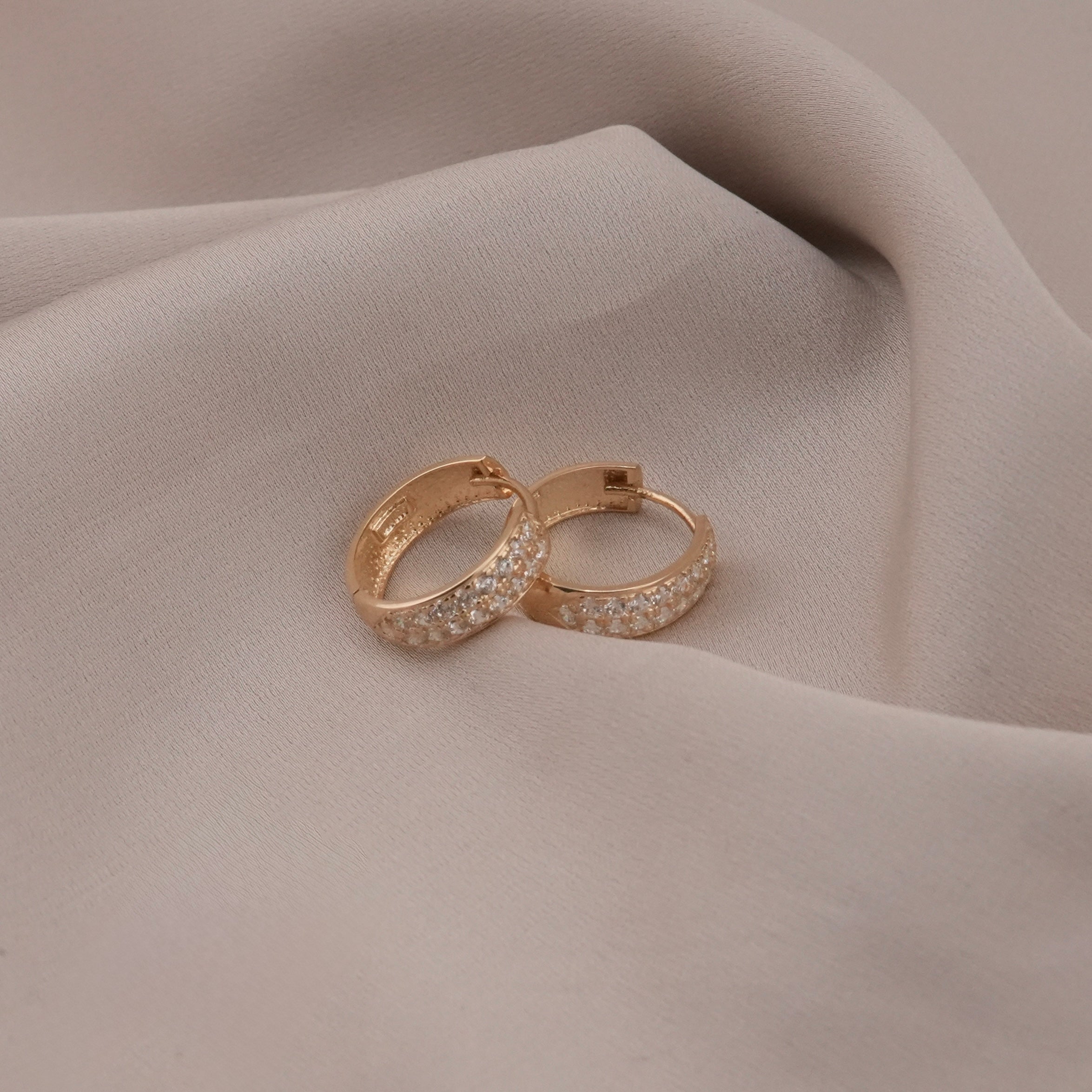 14k Gold CZ Huggie Earrings