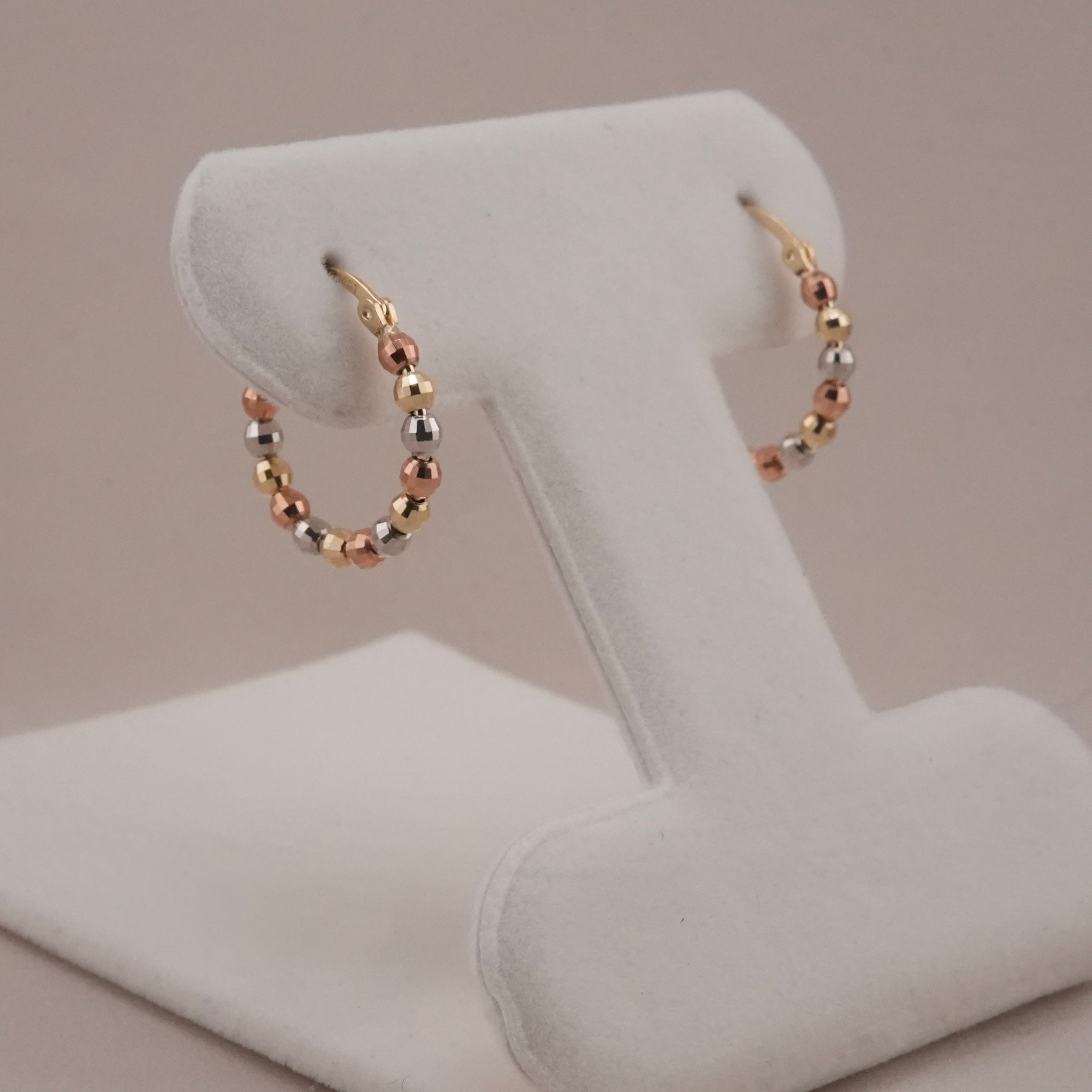 14k Gold 3 Tone Ball Hoop Earrings