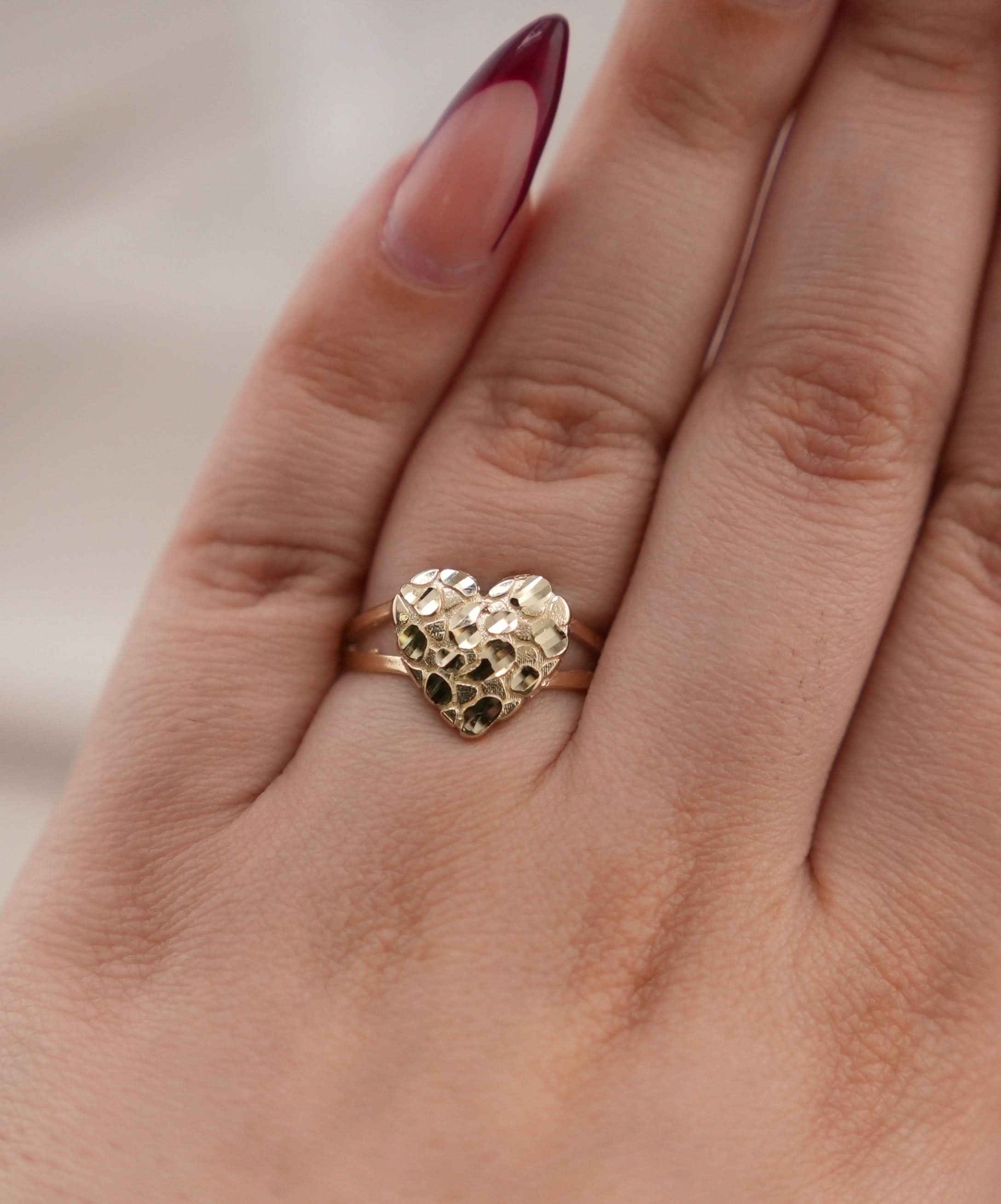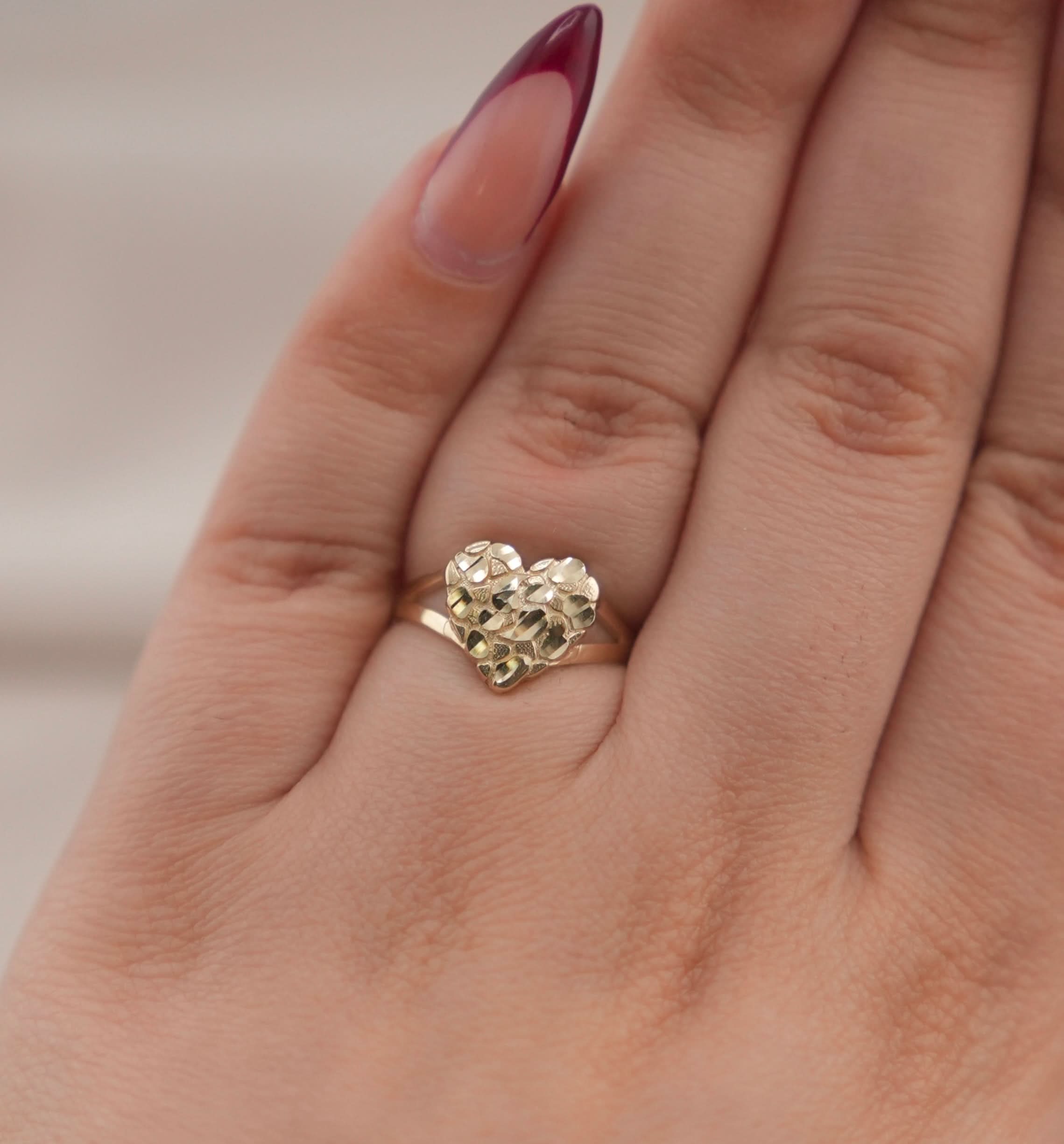 14k Gold Large Nugget Heart Women’s Ring . 067