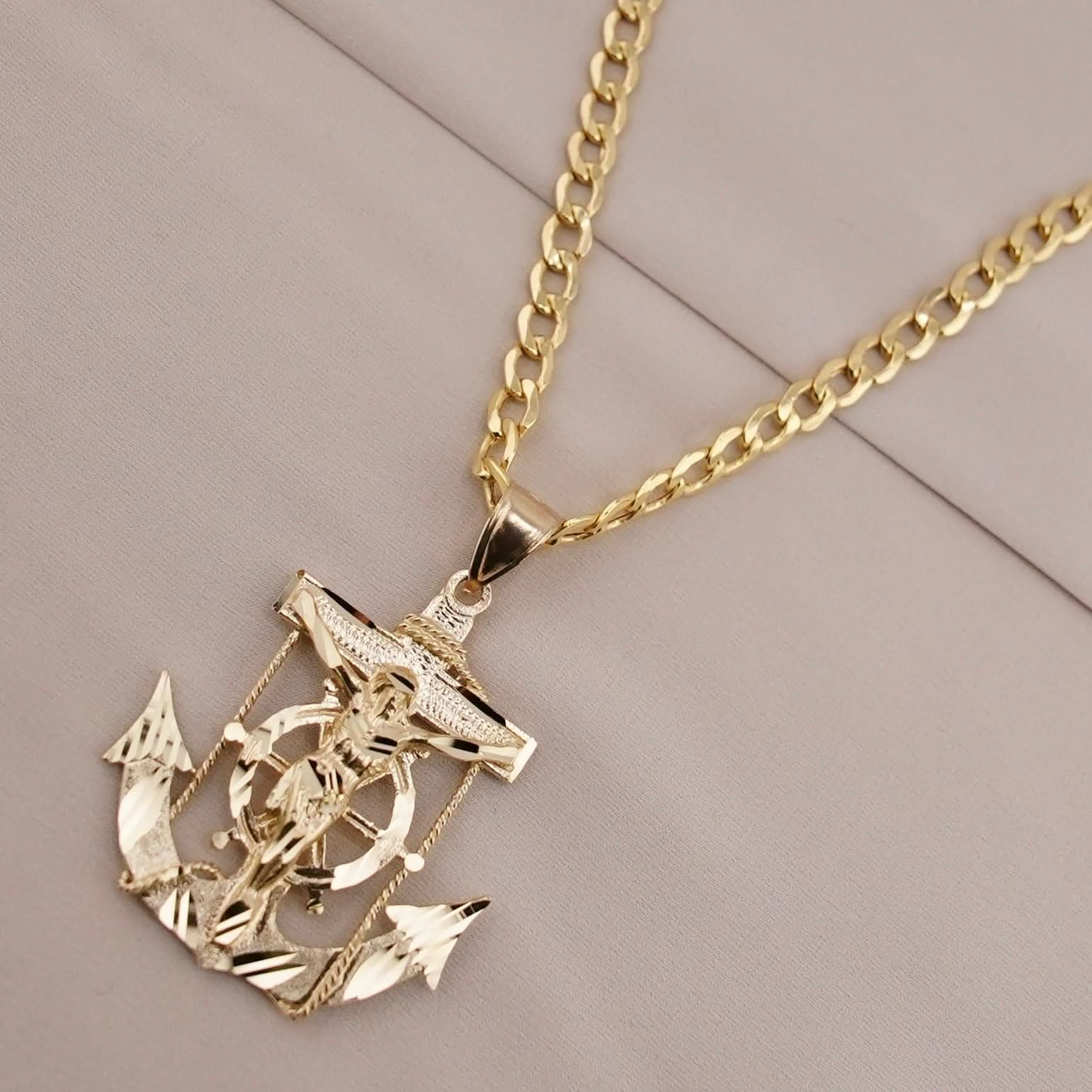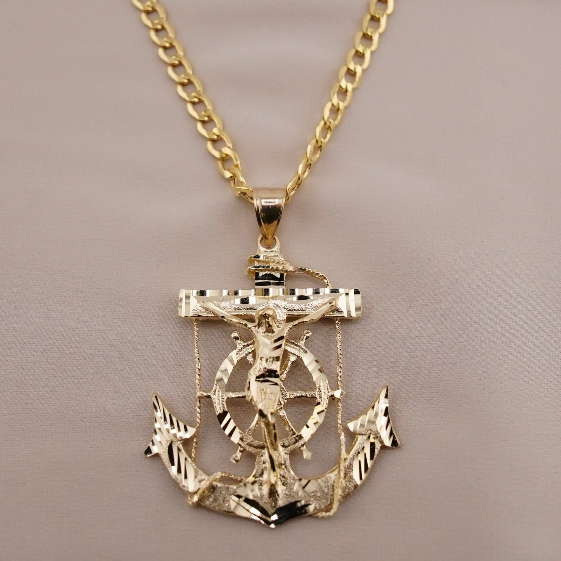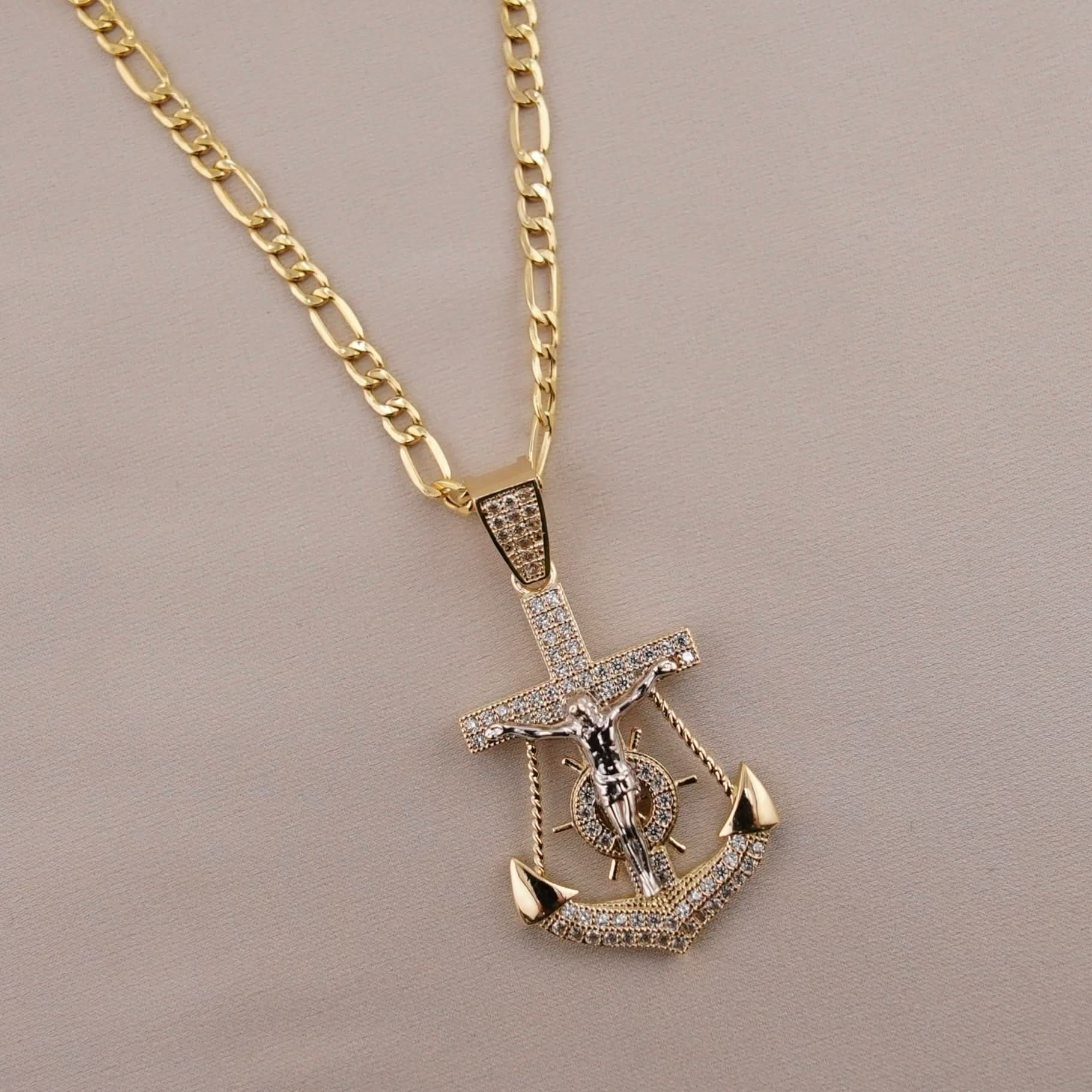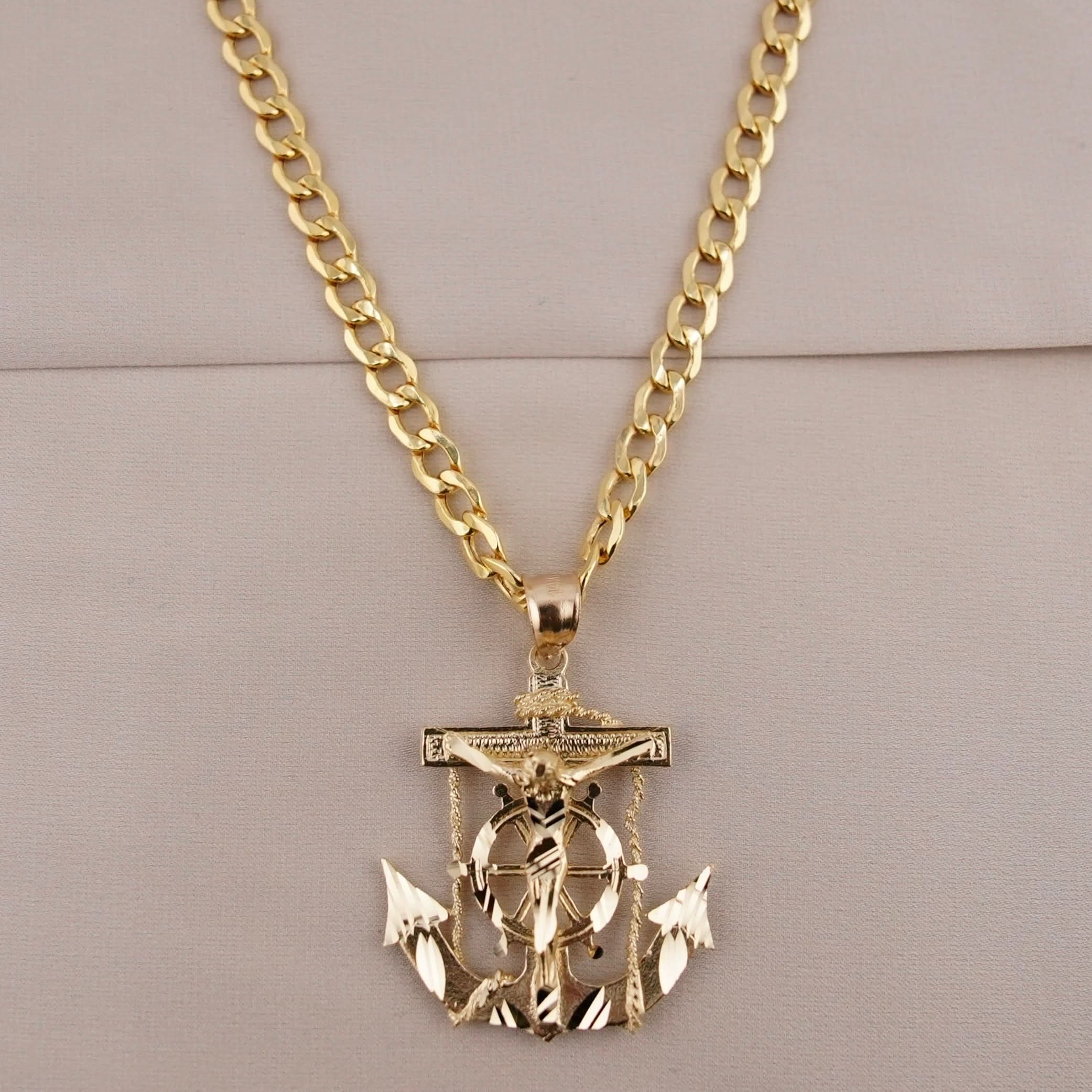 14k Gold San Judas Anchor Chain Set