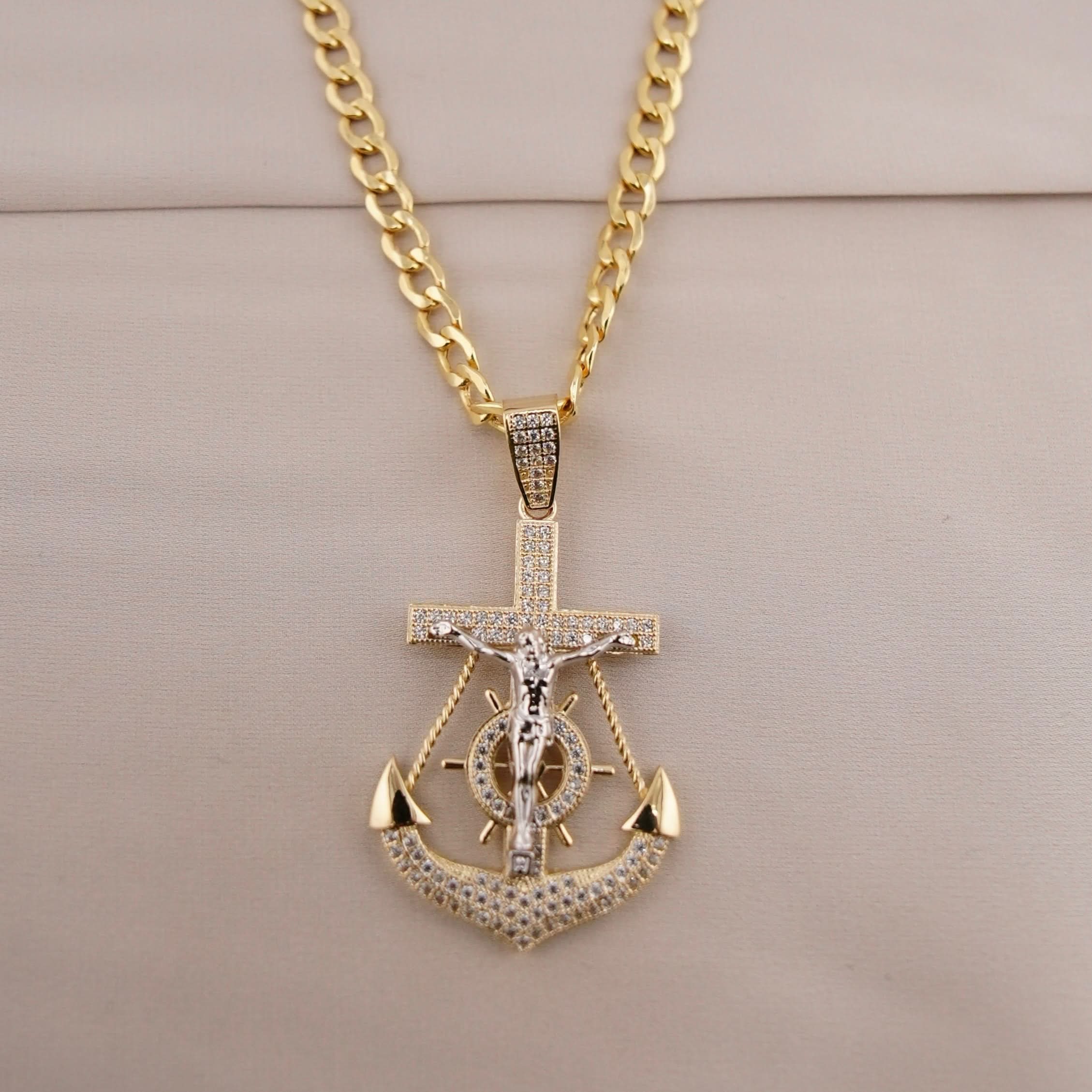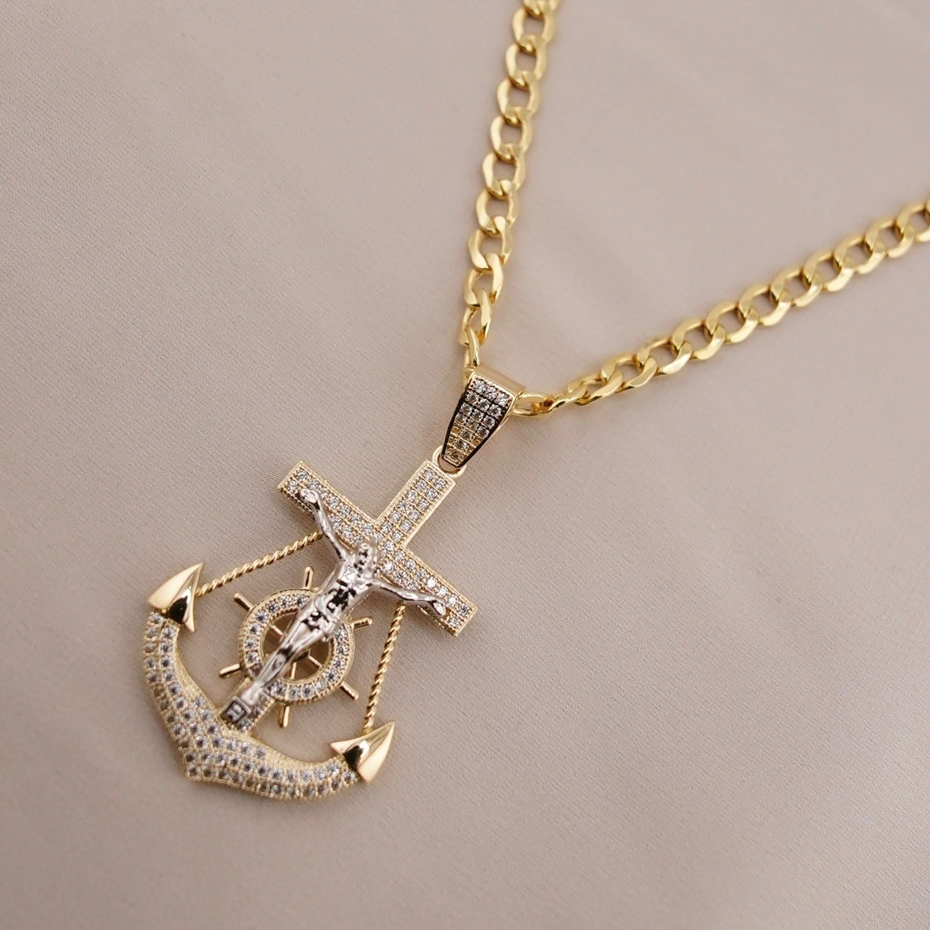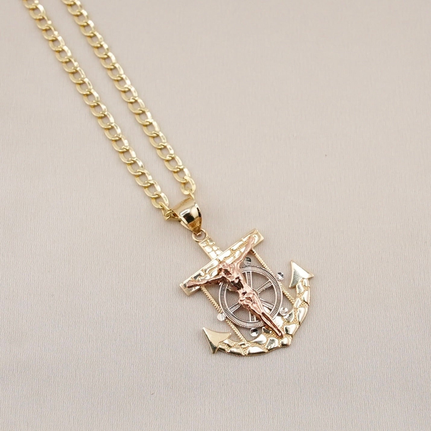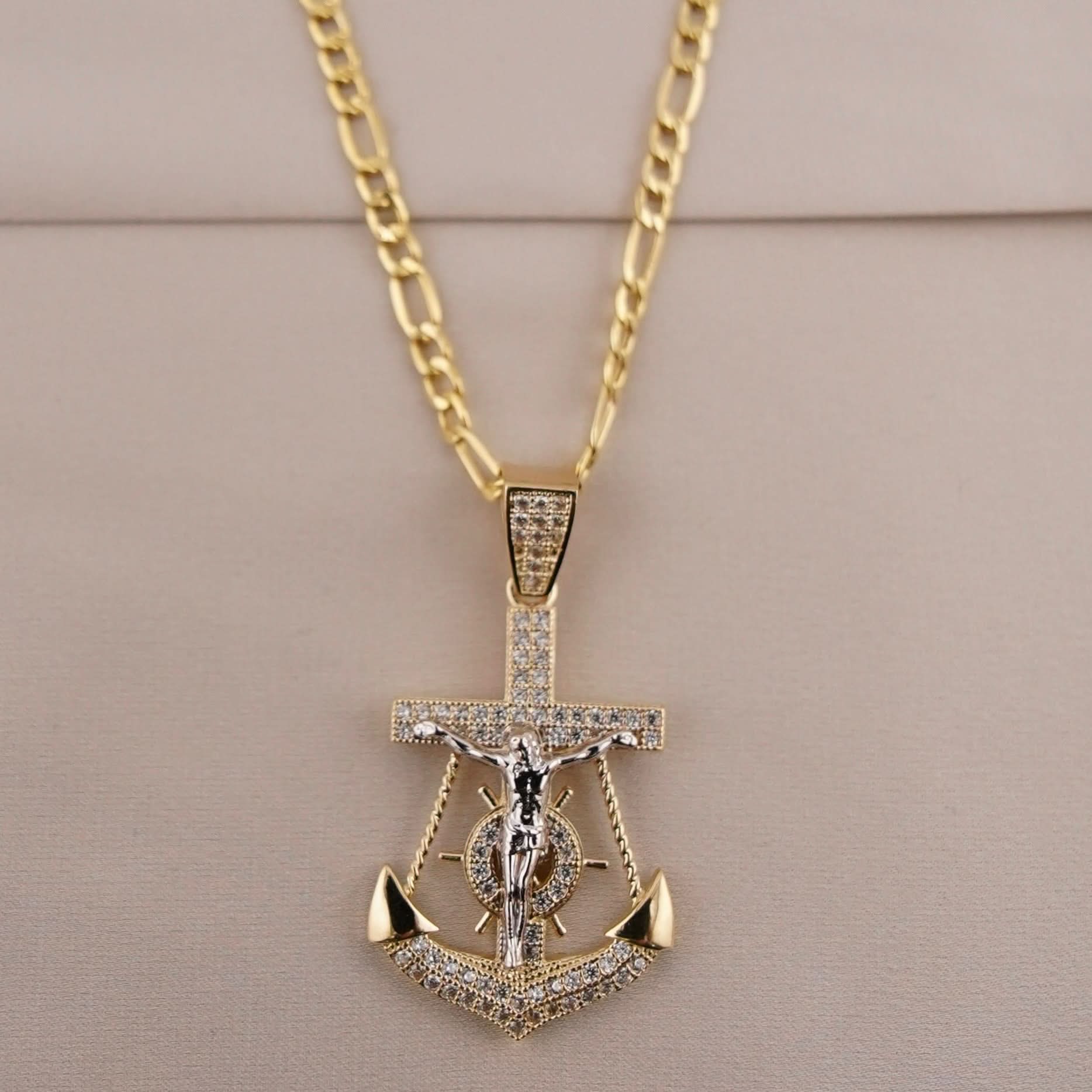 14k Gold San Judas Anchor Chain Set