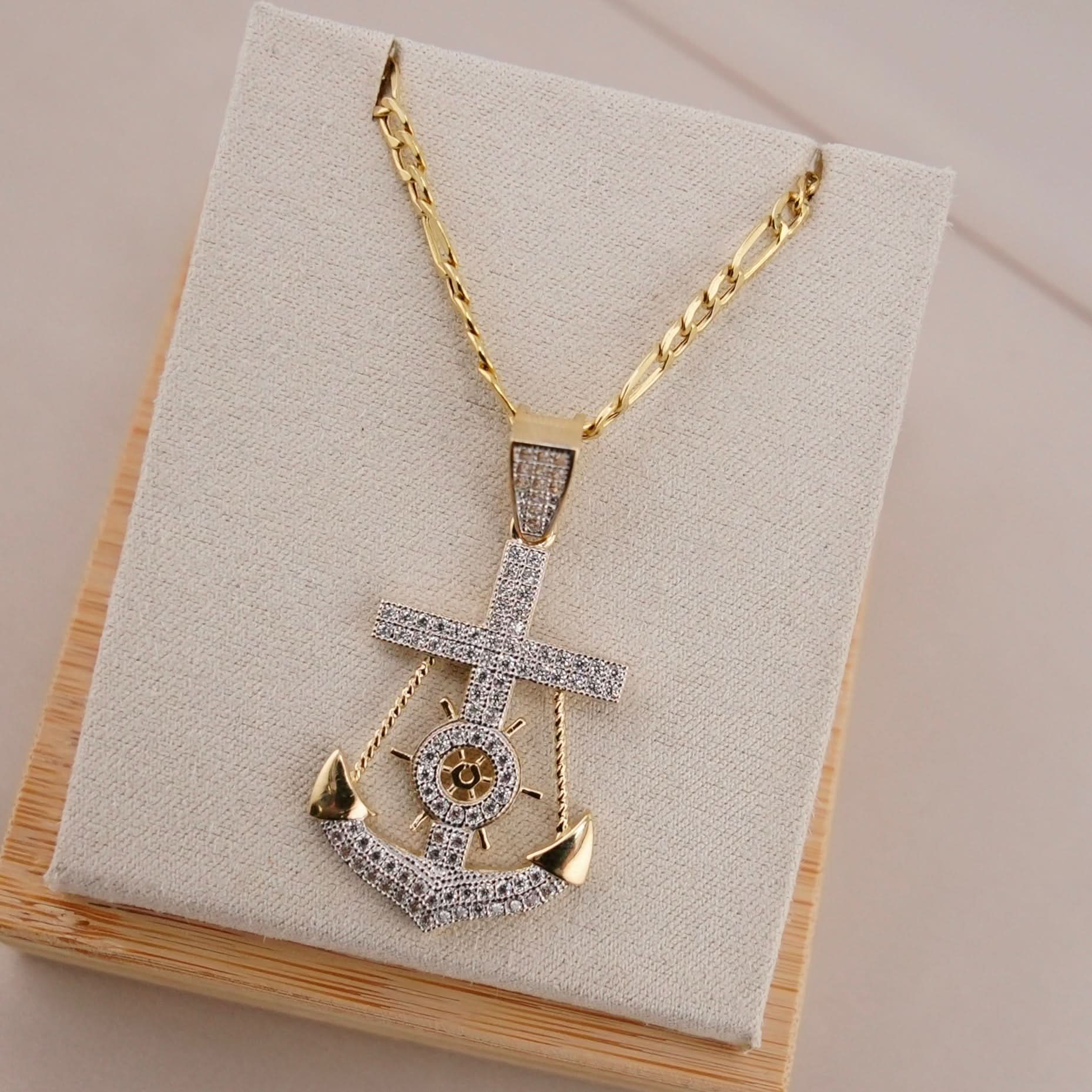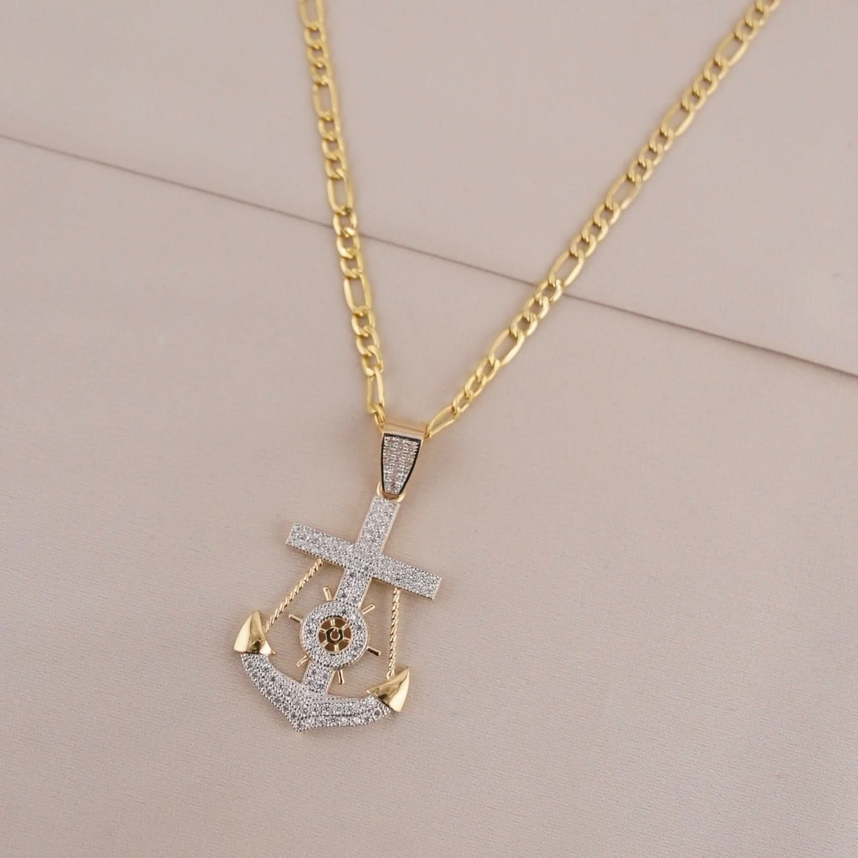 14k Gold Anchor Pendant or Chain Set