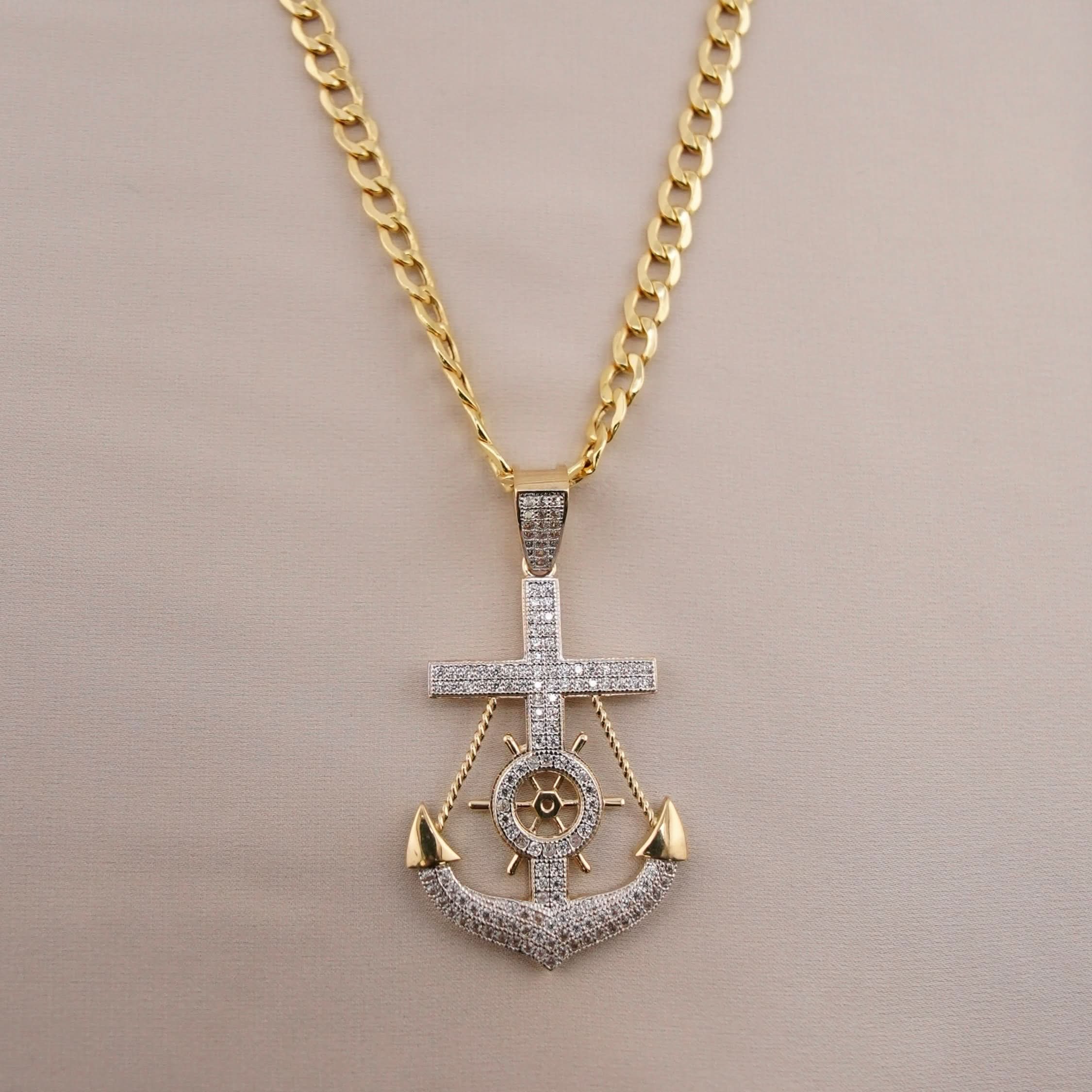 14k Gold Large Anchor Chain Set