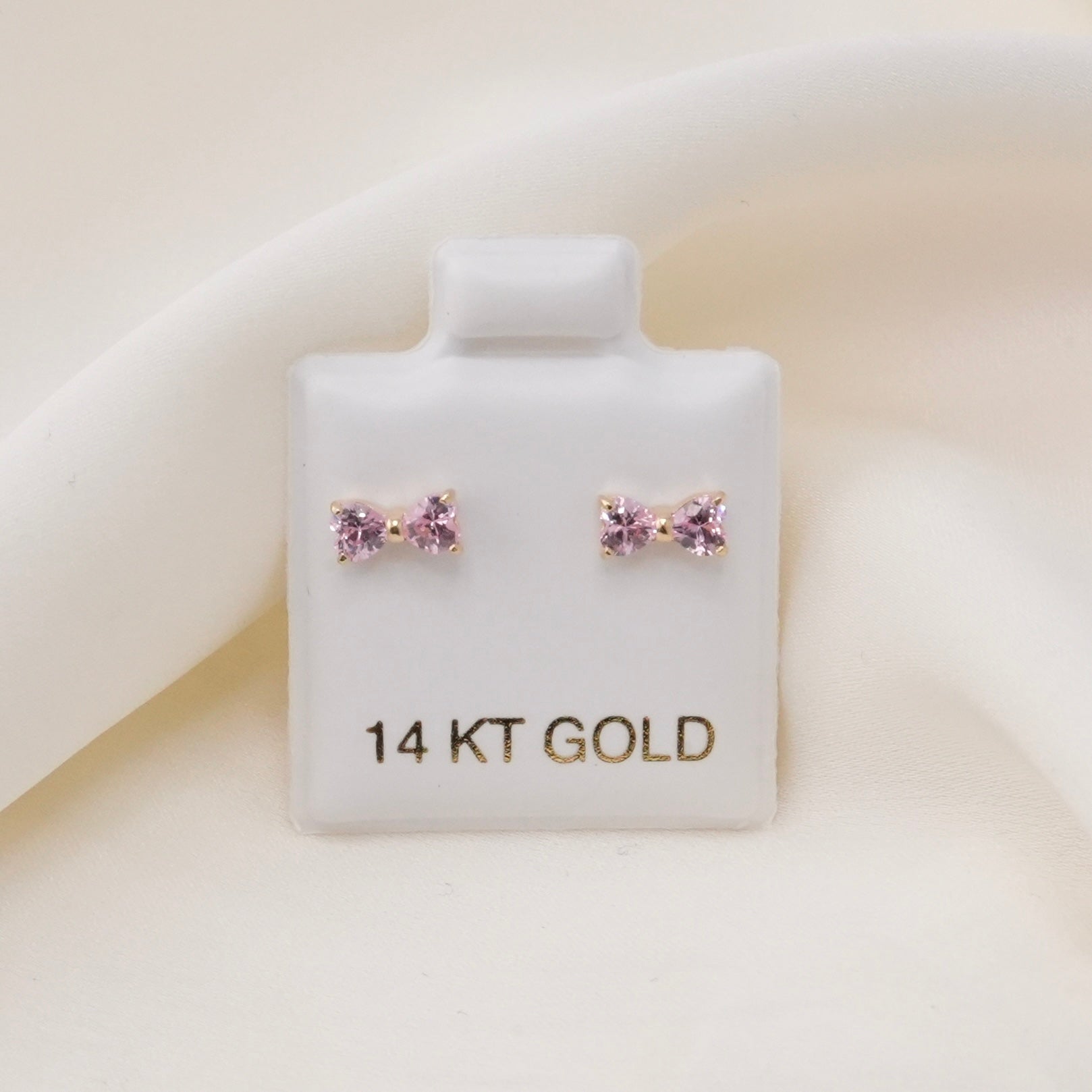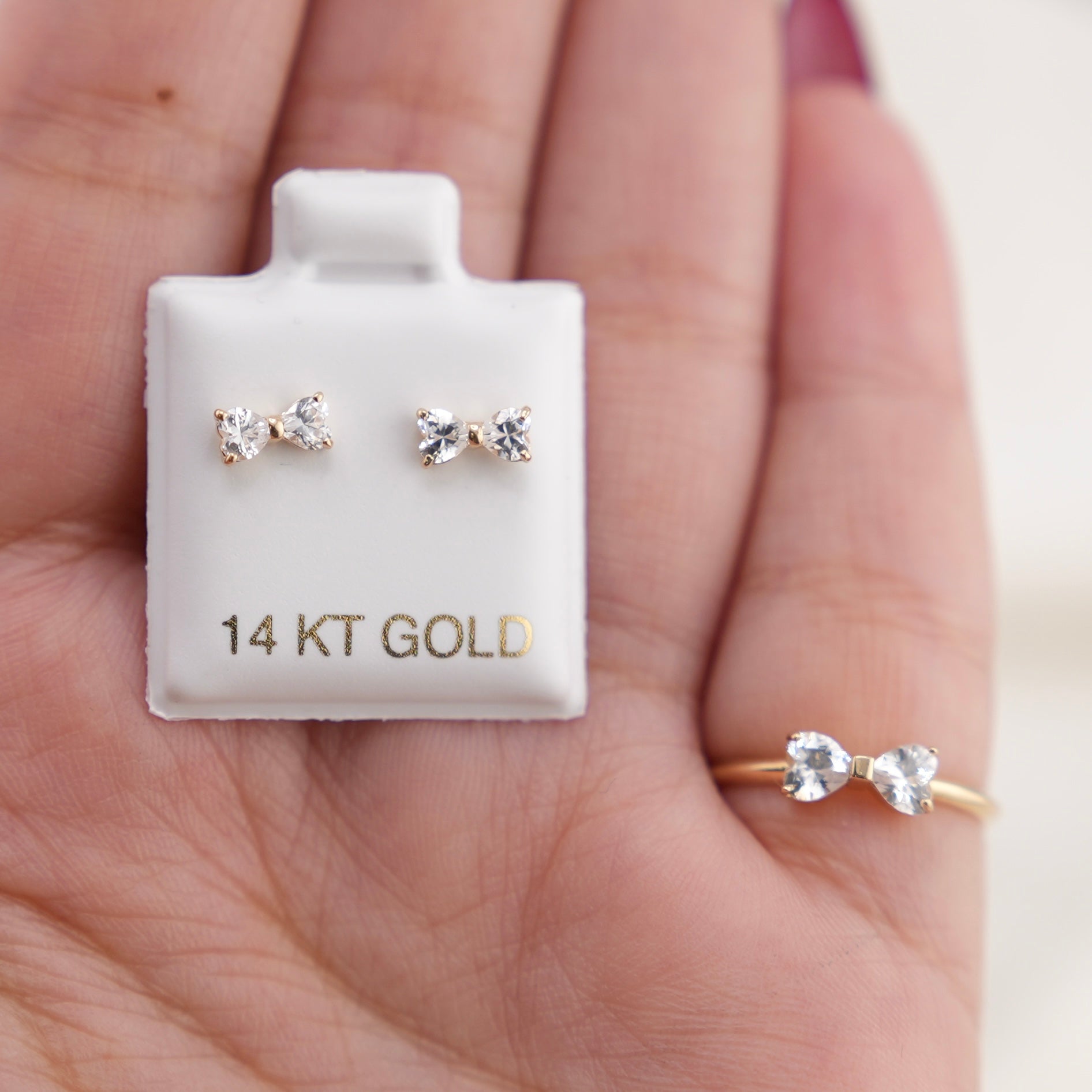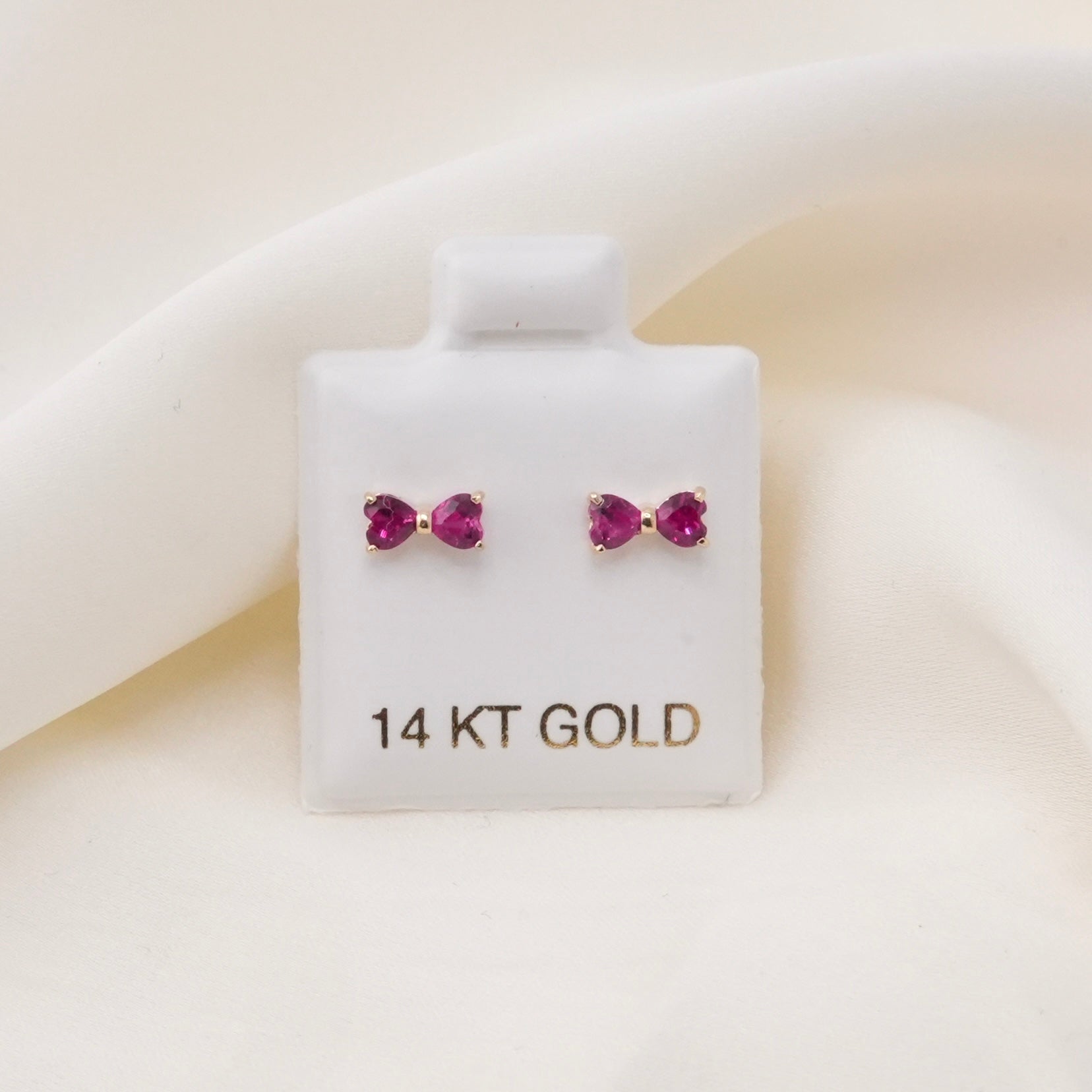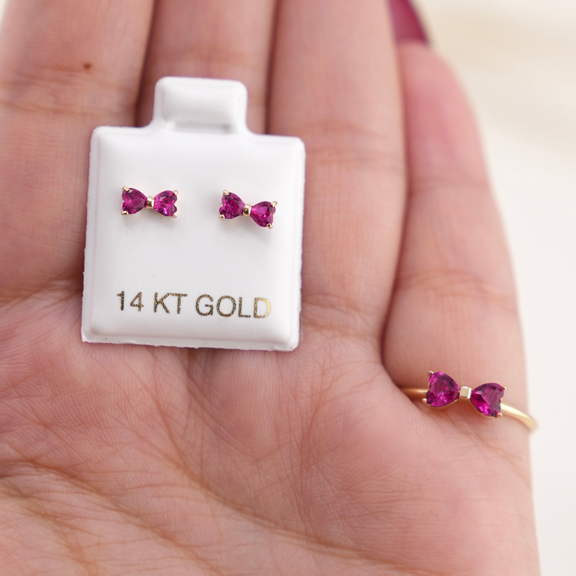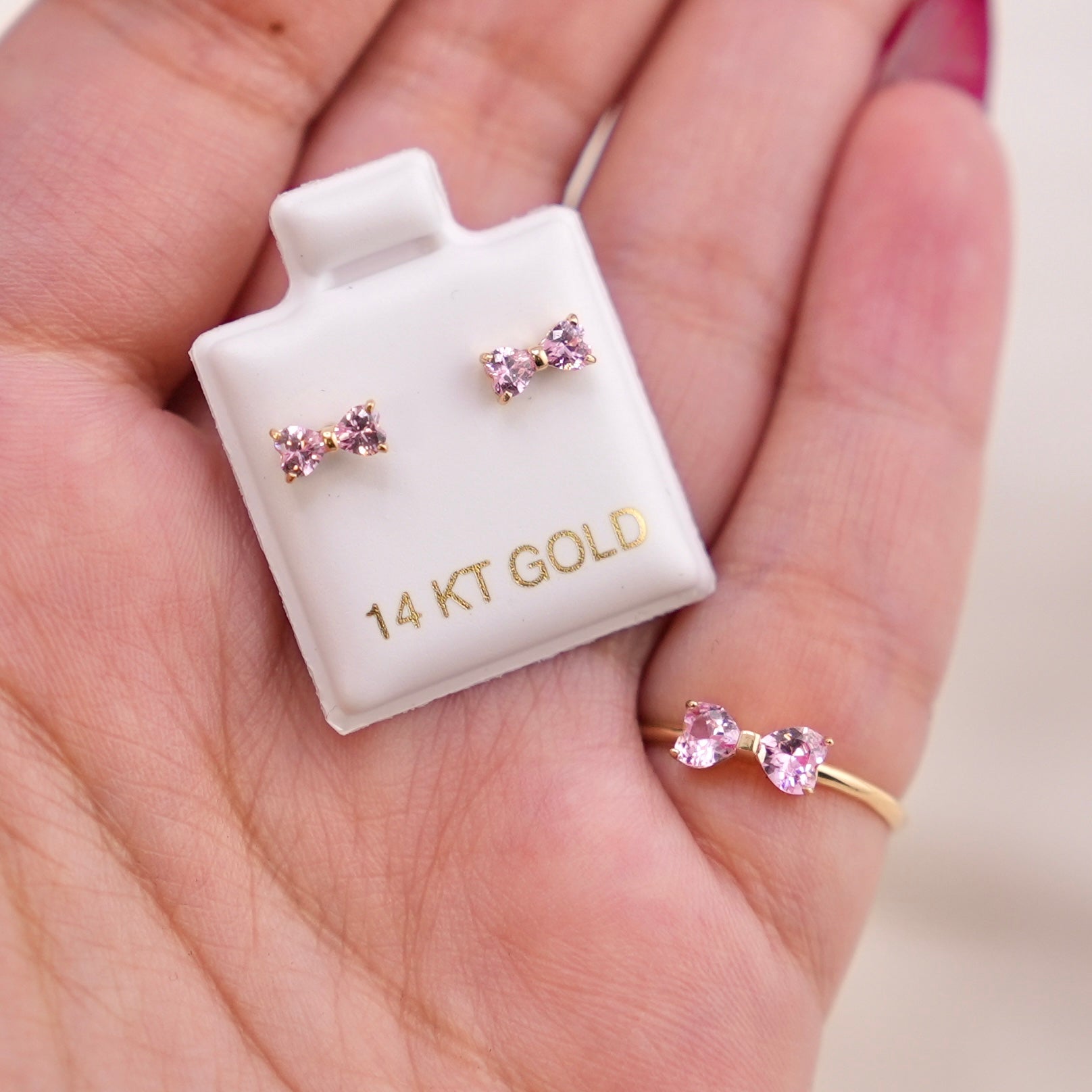 14k Gold Dark Pink Bow Earrings & Ring Set
