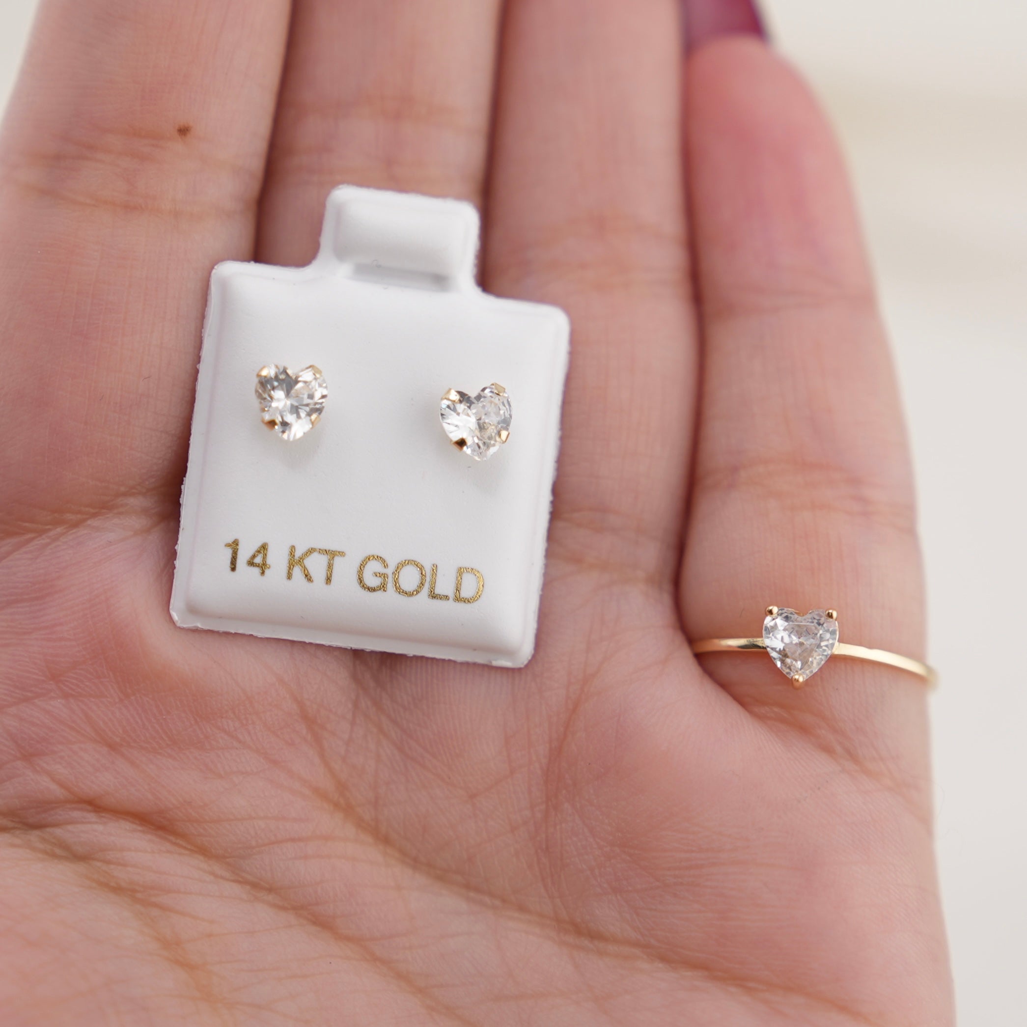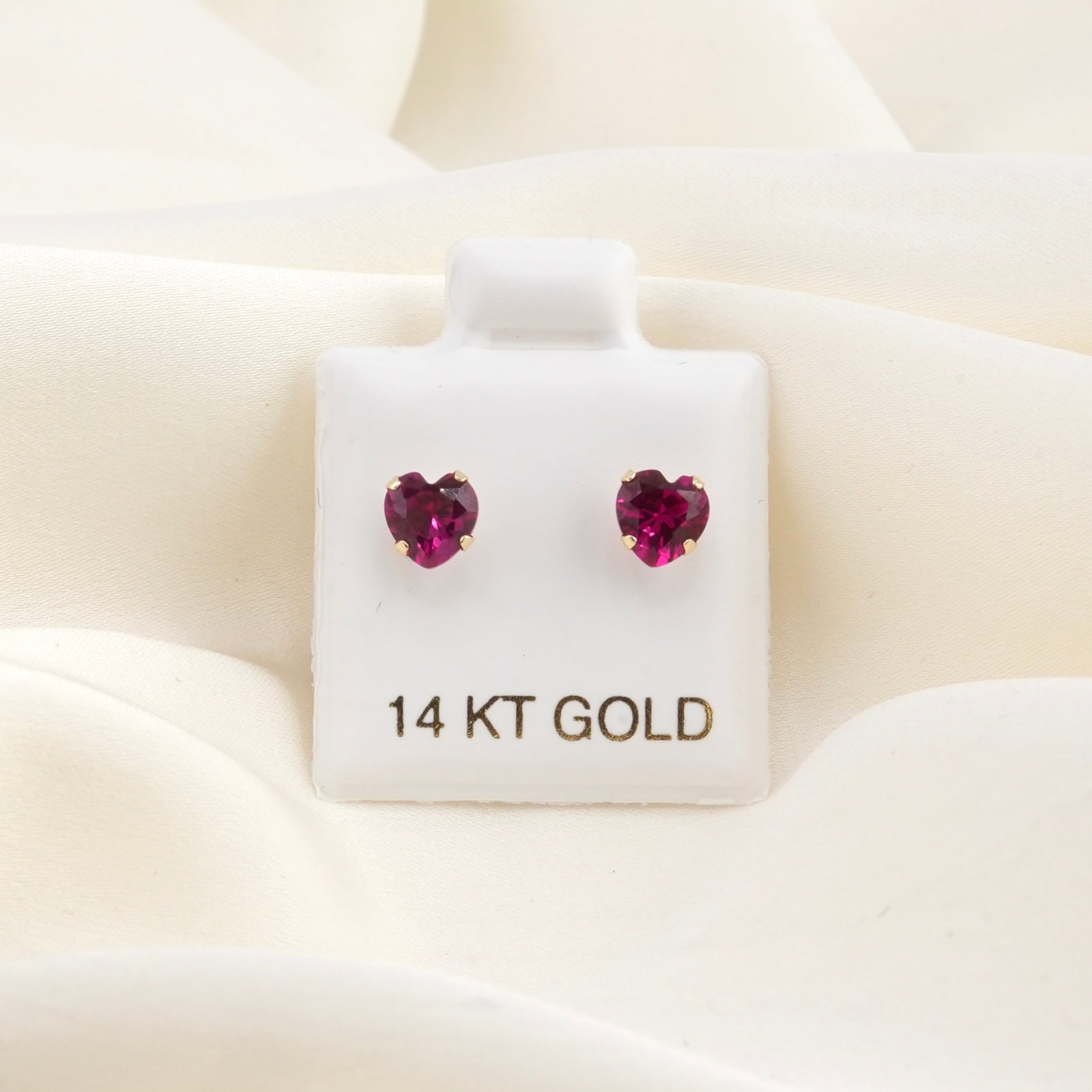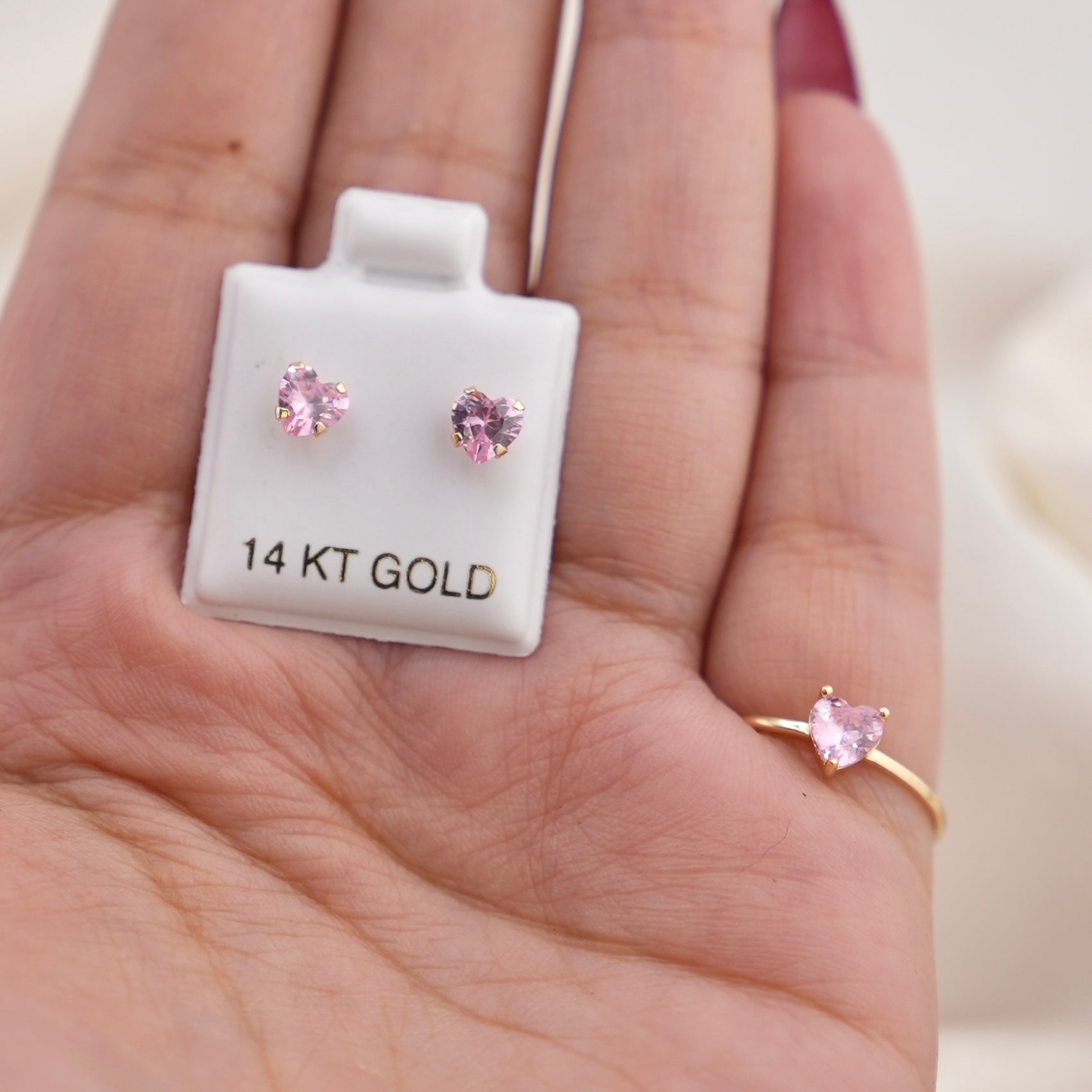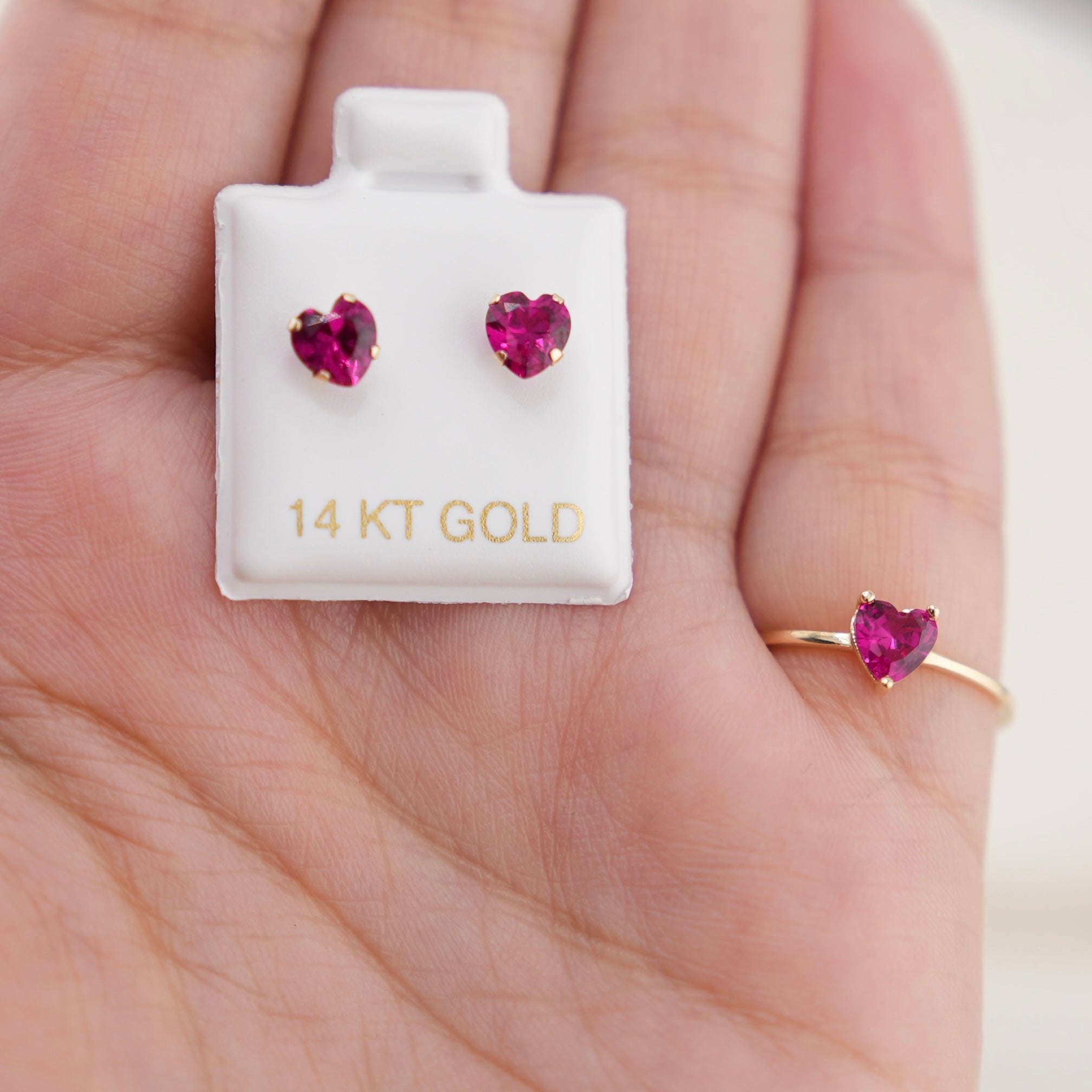 14k Gold Dark Pink Heart Earrings & Ring Set