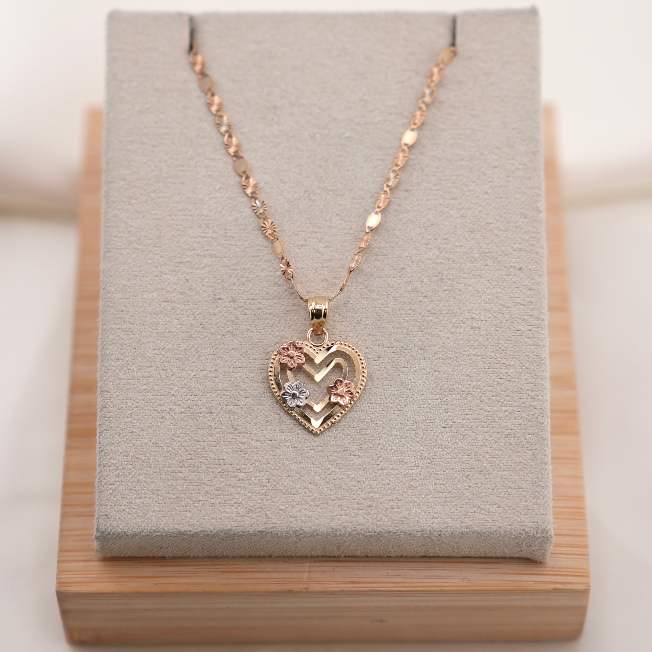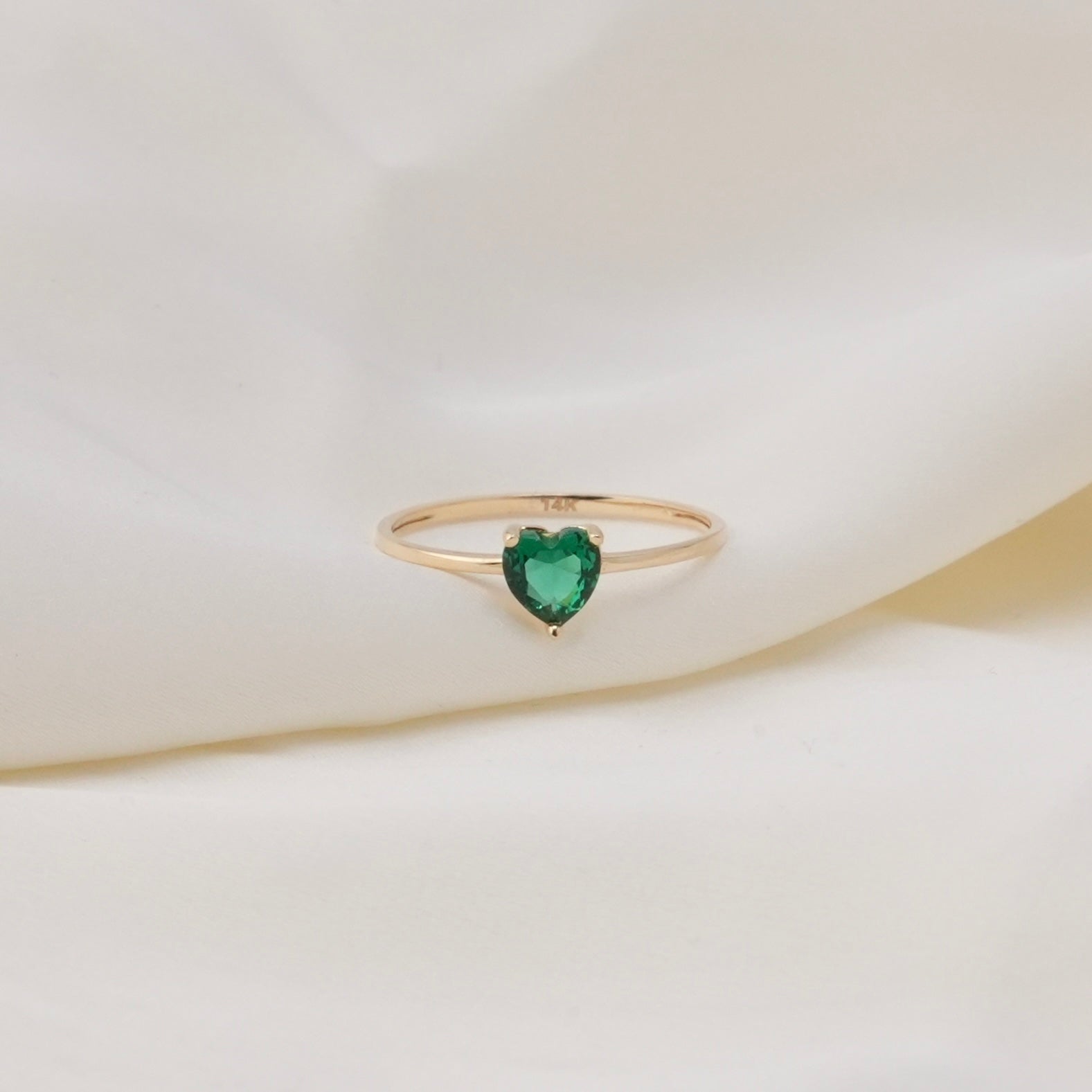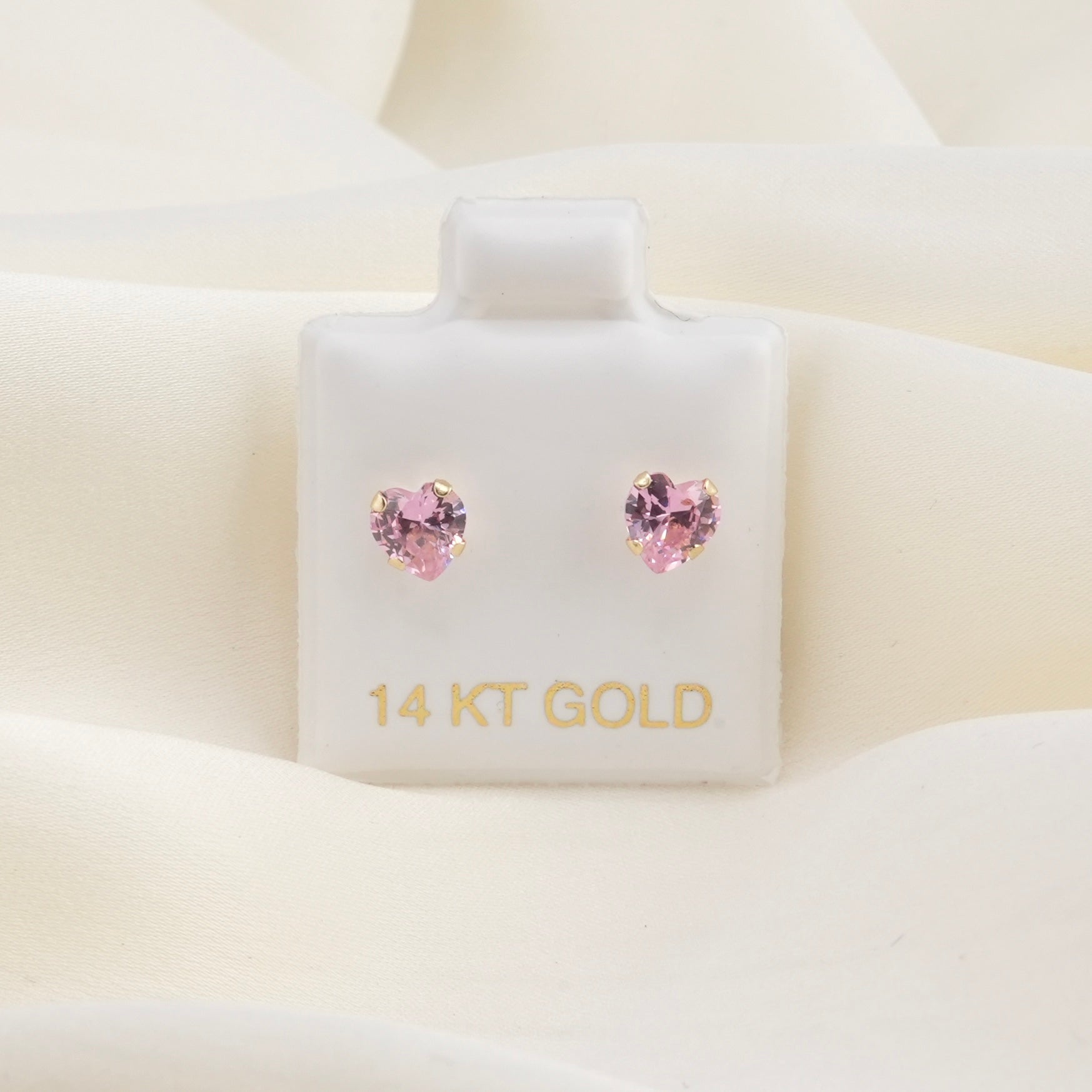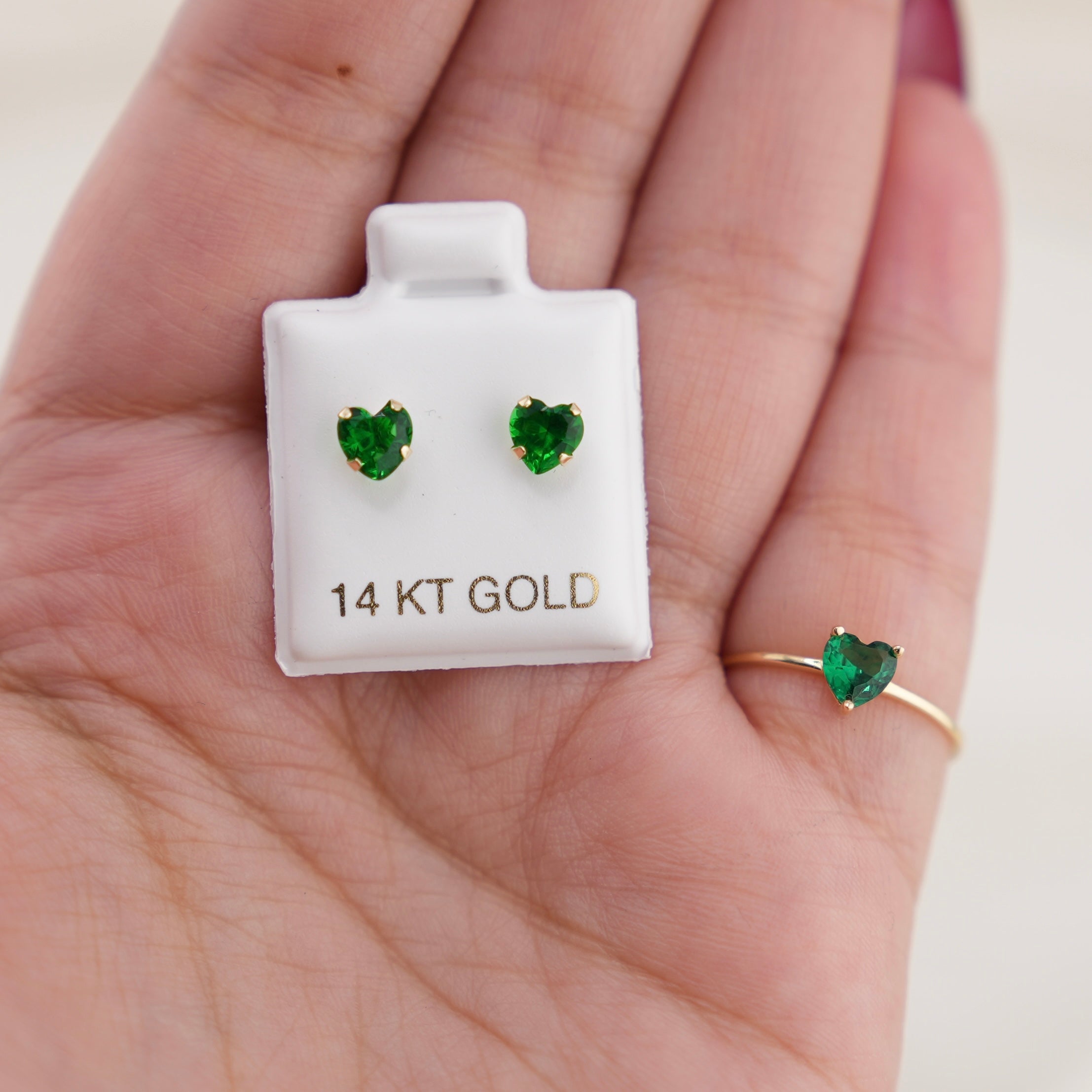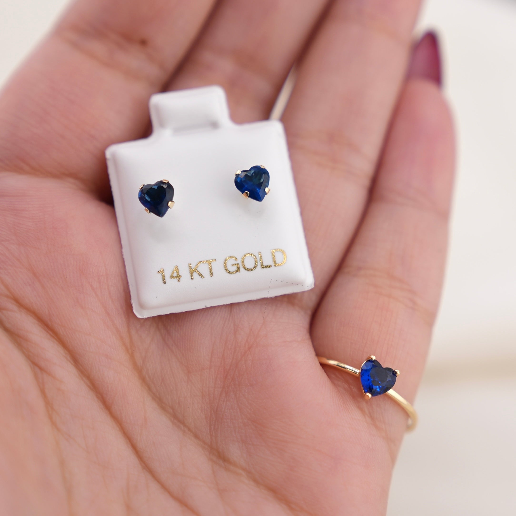 14k Gold Dark Pink Heart Earrings & Ring Set