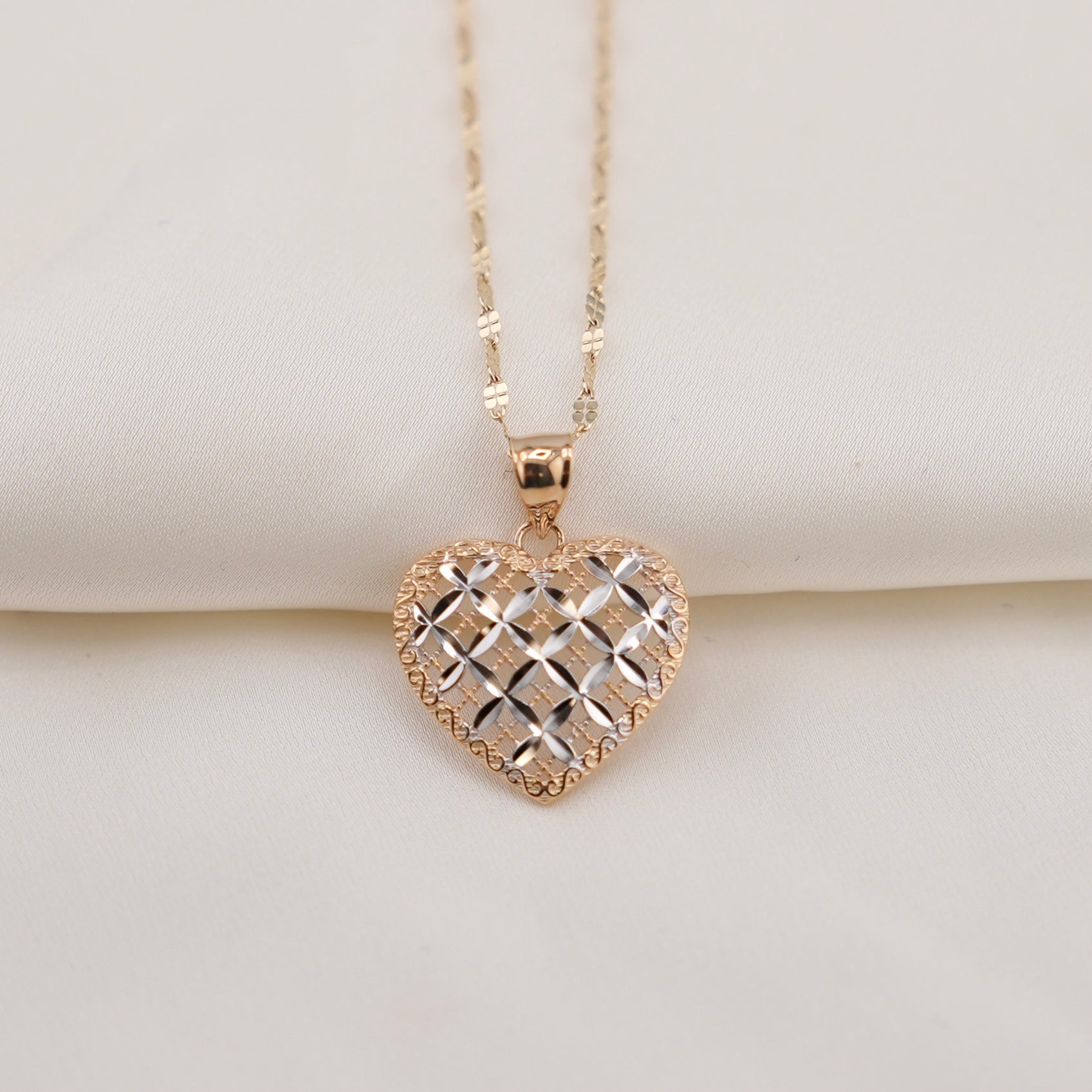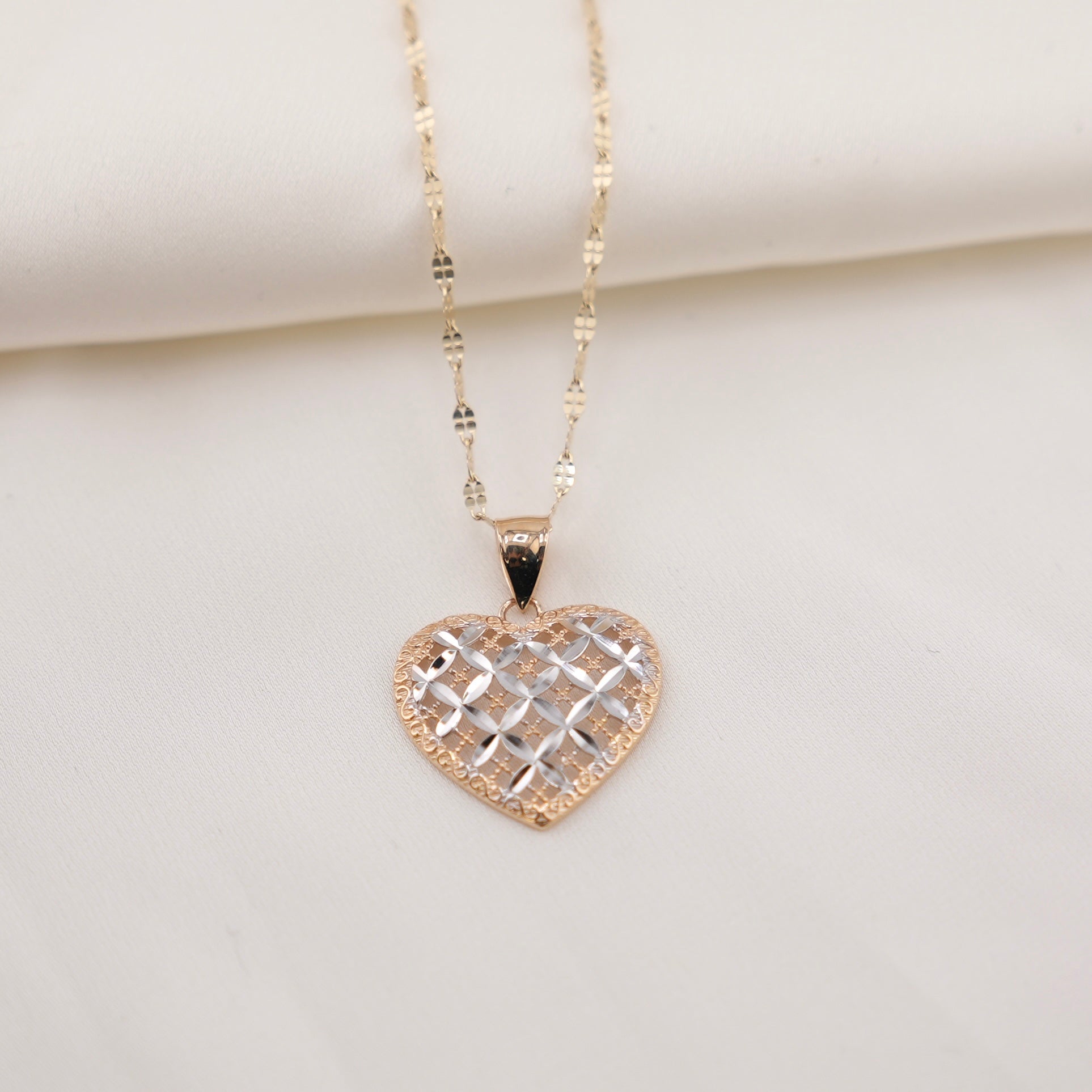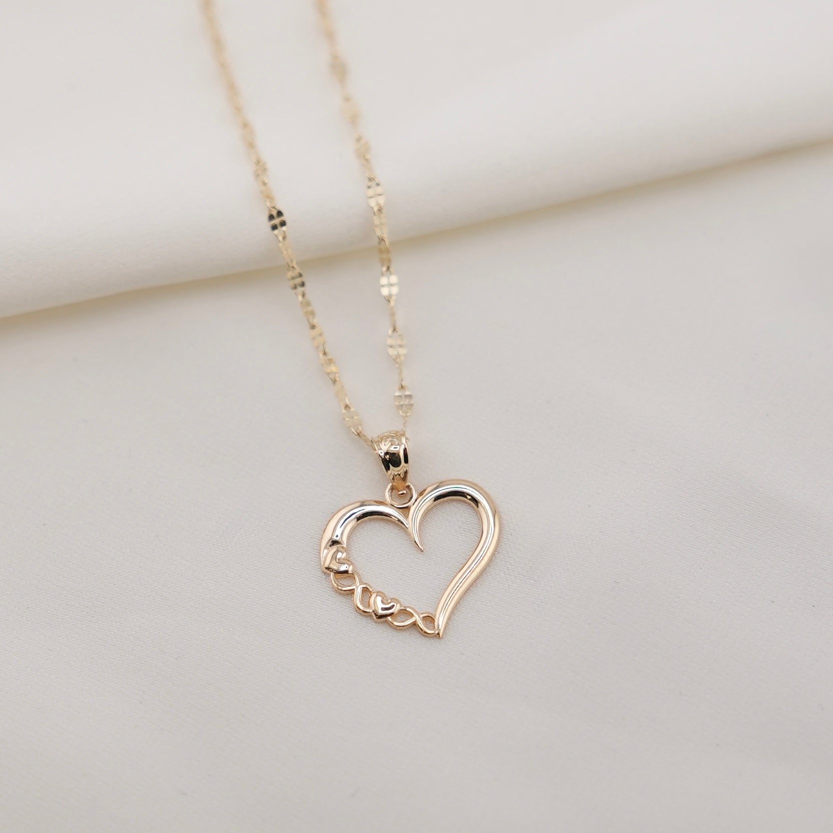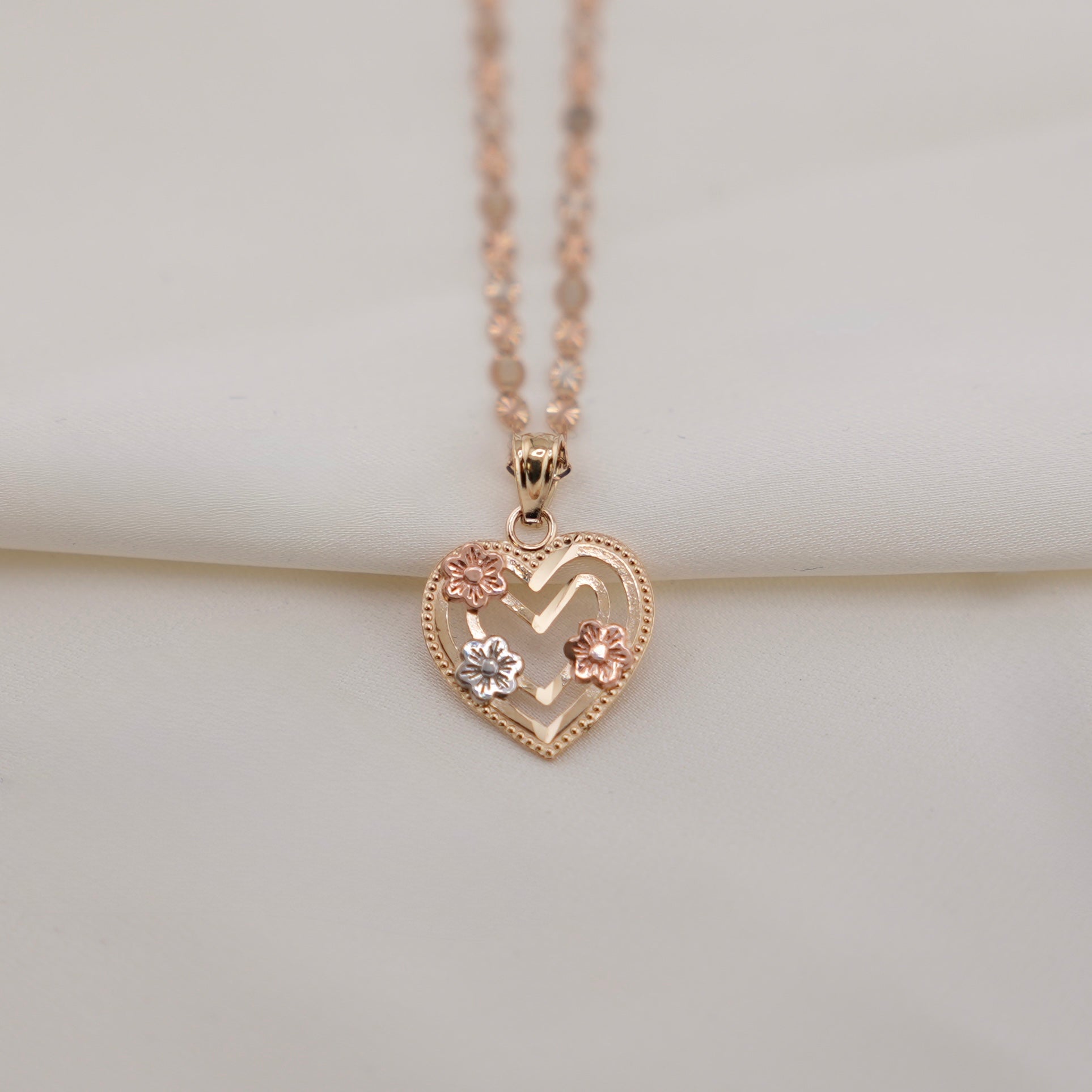 14k Gold Dark Pink Heart Earrings & Ring Set