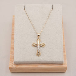 14k Gold Cross Two Tone Chain Set