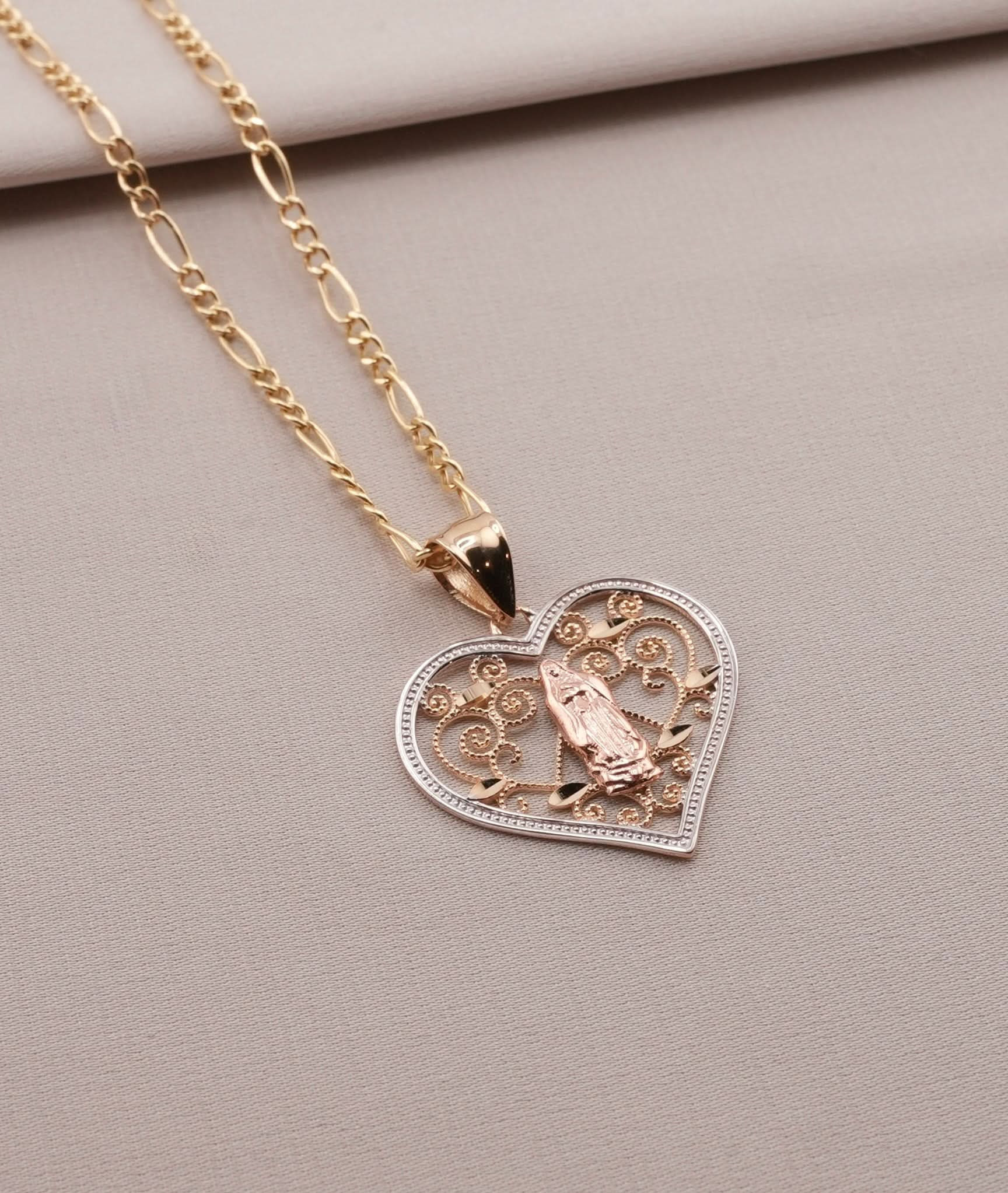 14k Gold Virgencita Pendant or Chain Set . PT-