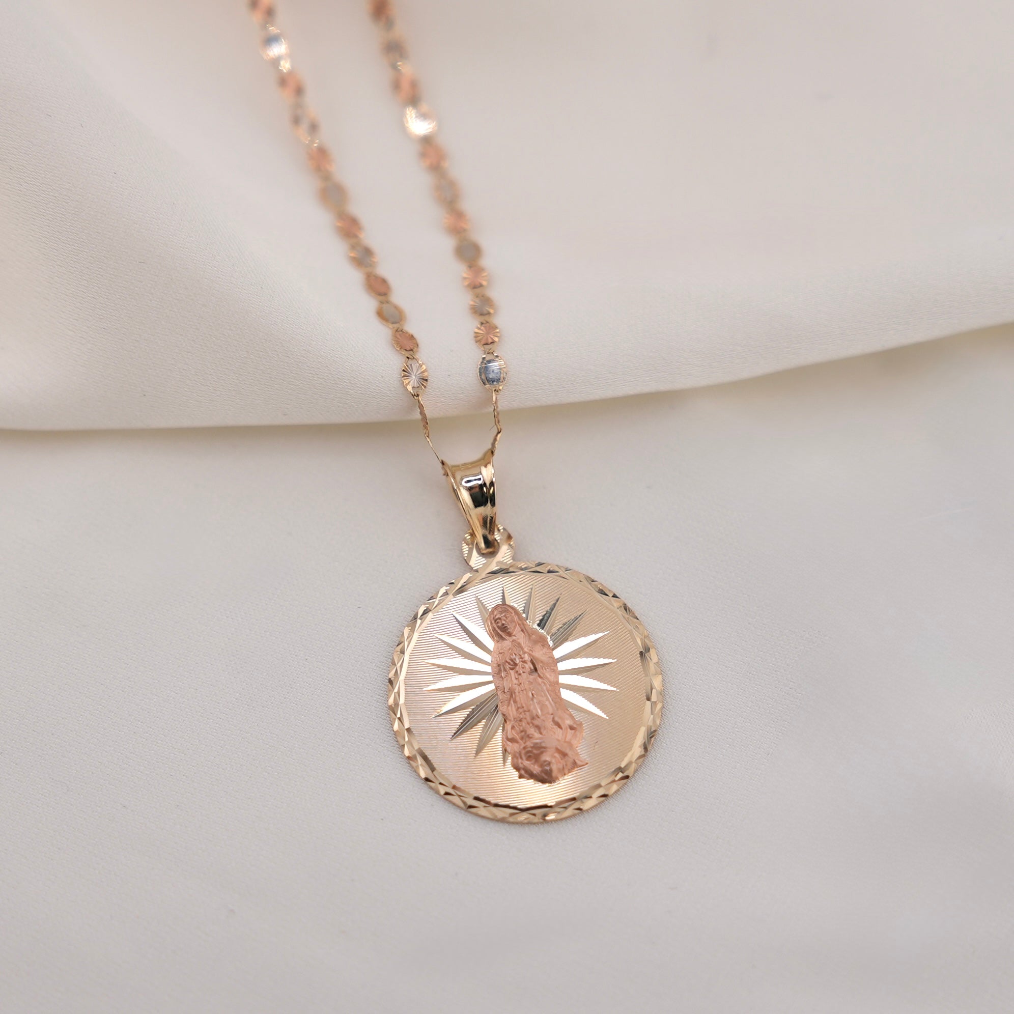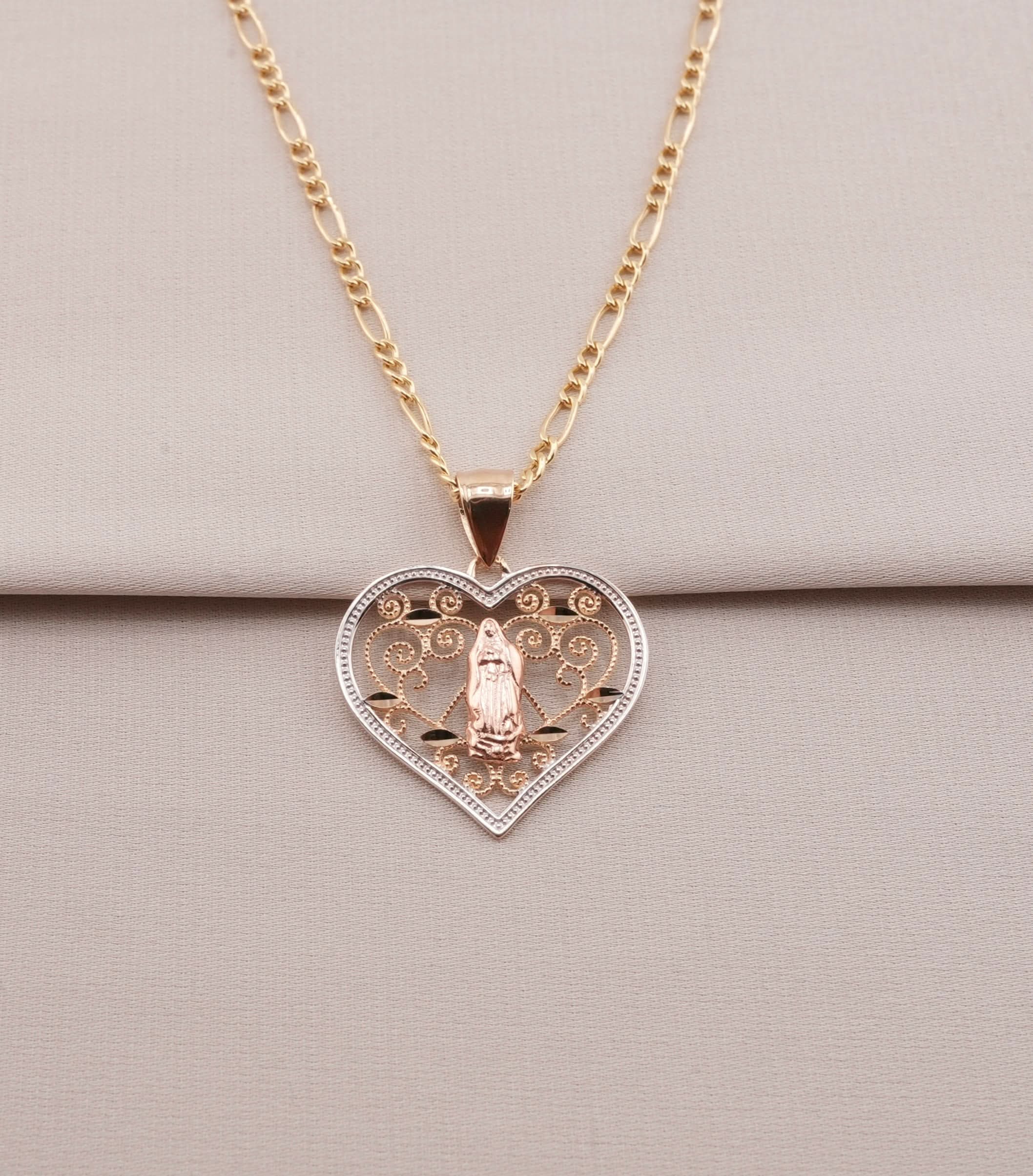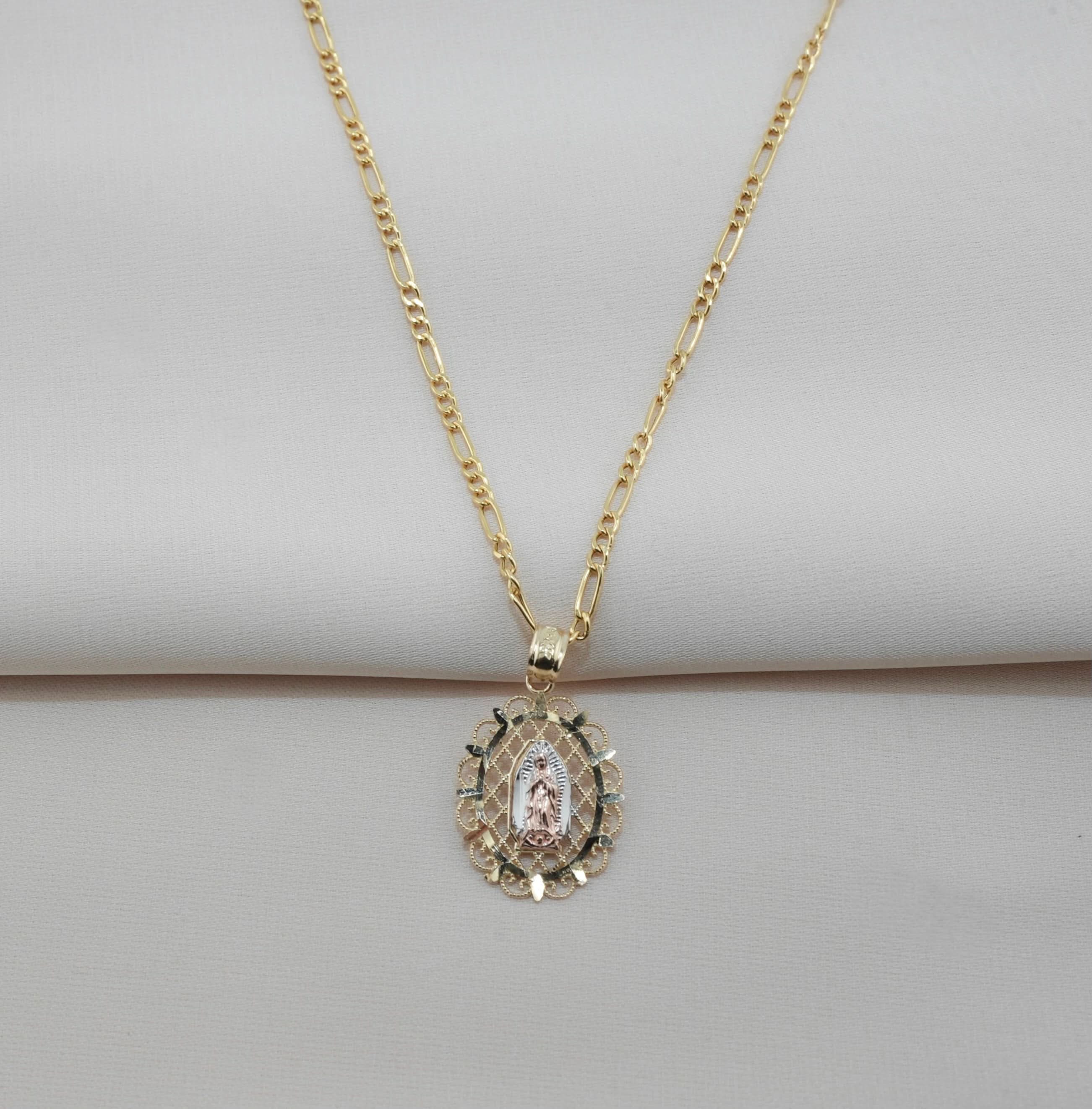 14k Gold 3 Tone Virgencita Chain Set . 087
