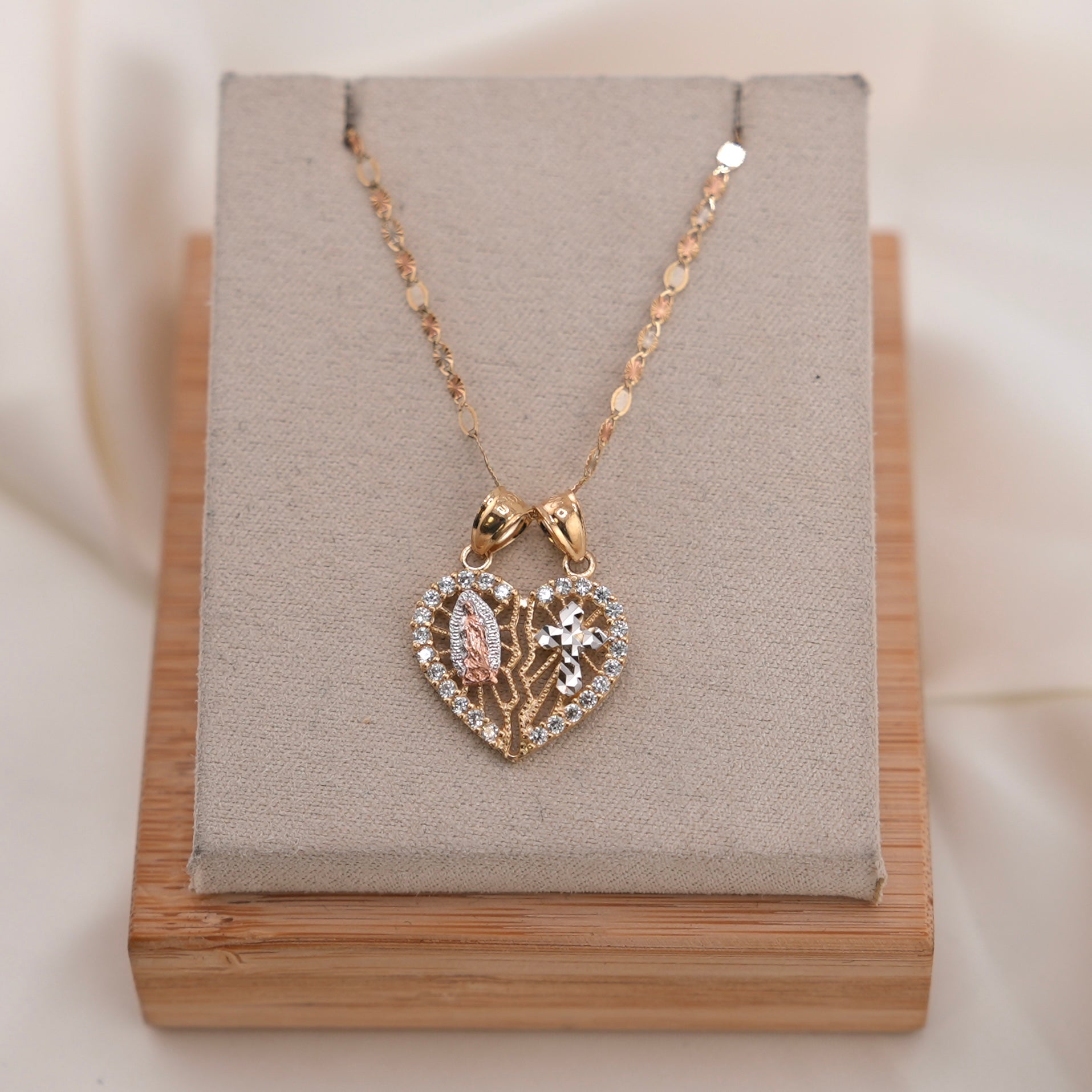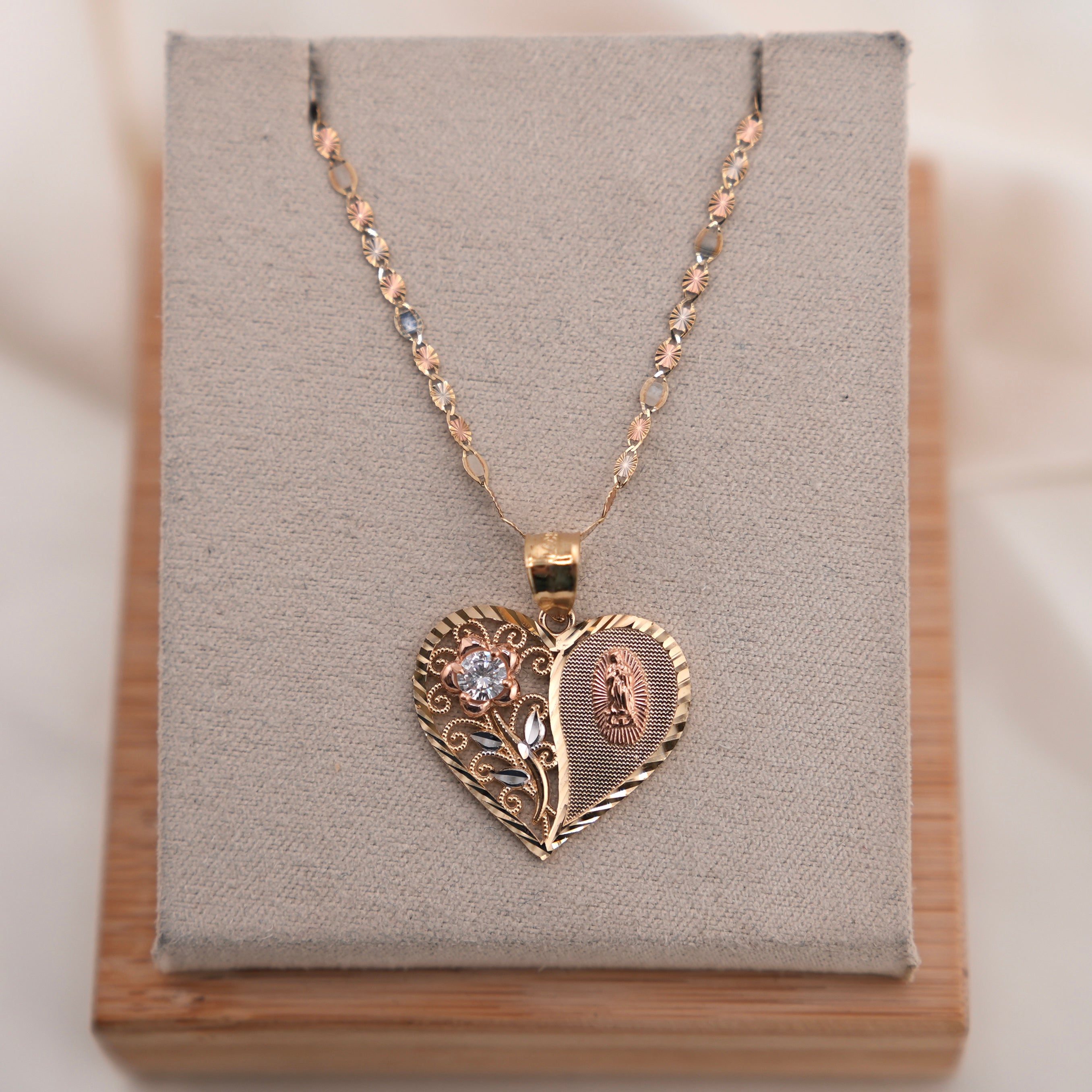 14k Gold Virgencita Heart Chain Set