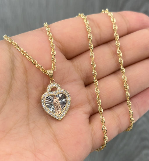 14k Gold Virgencita Pendant or Chain Set . PT-