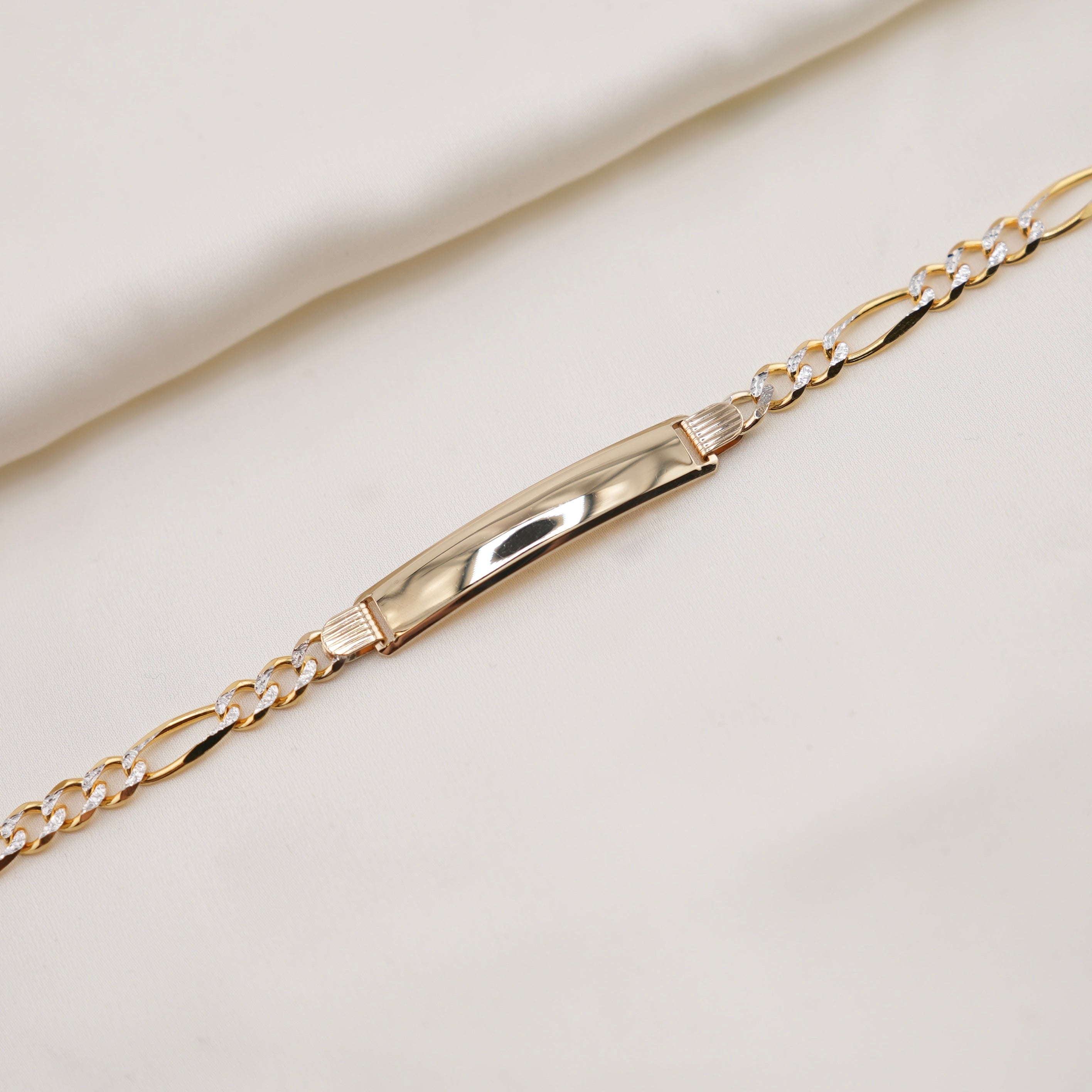 14k Gold Solid 6mm White Pave Figaro ID Bracelet