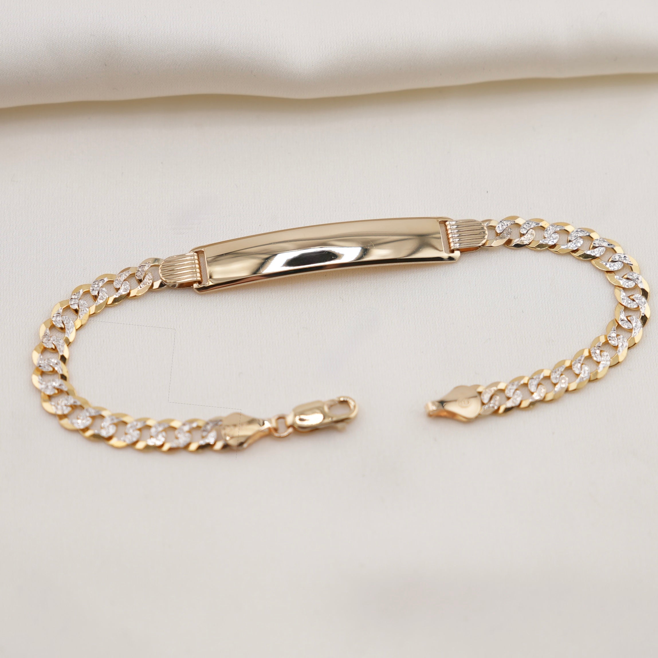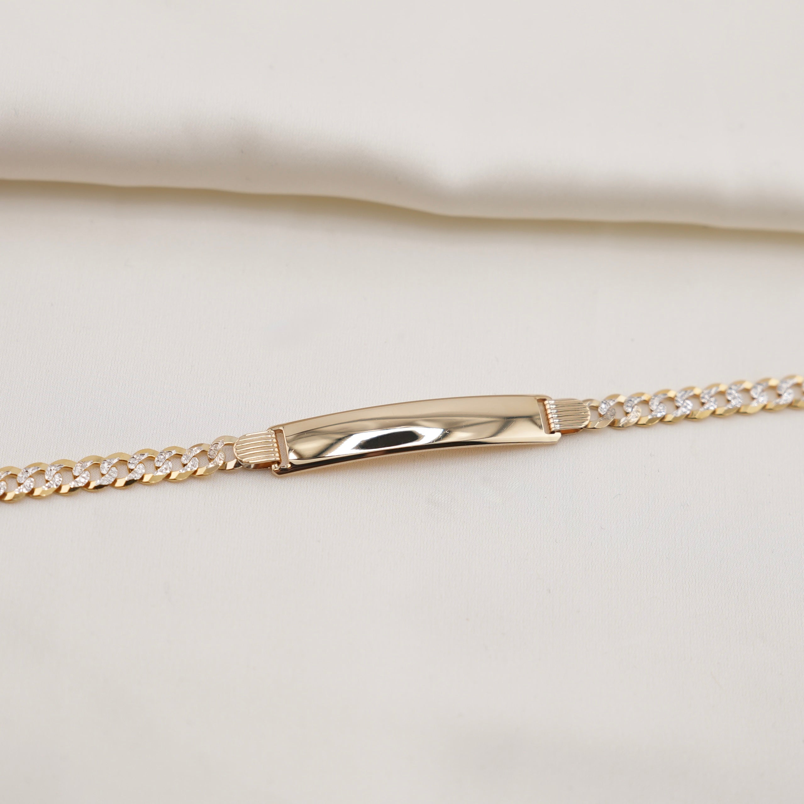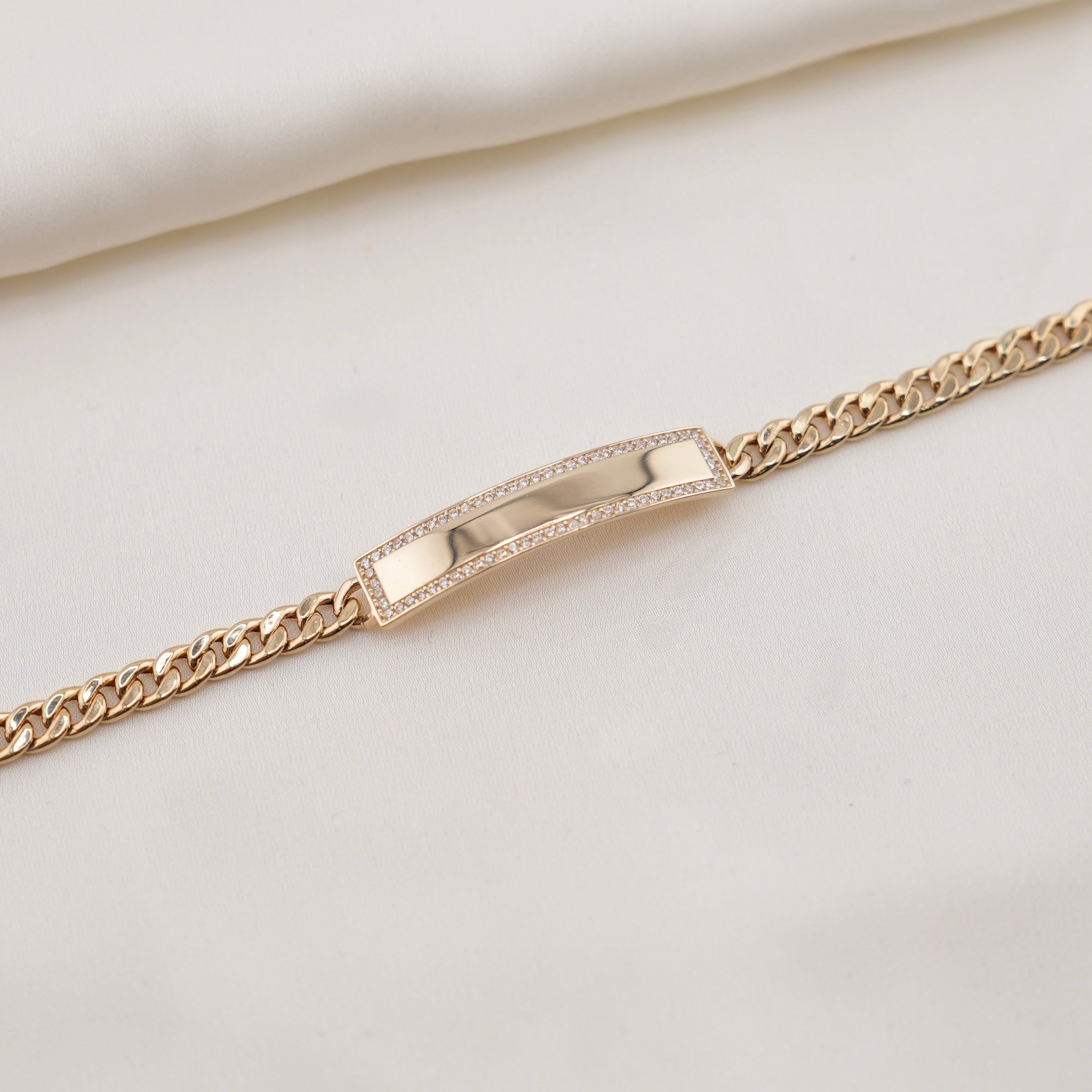 14k Gold Solid 5.5mm White Pave Curb ID Bracelet
