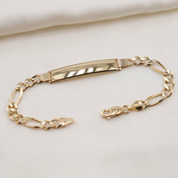 14k Gold Sold Figaro ID Bracelet 11.5-13g
