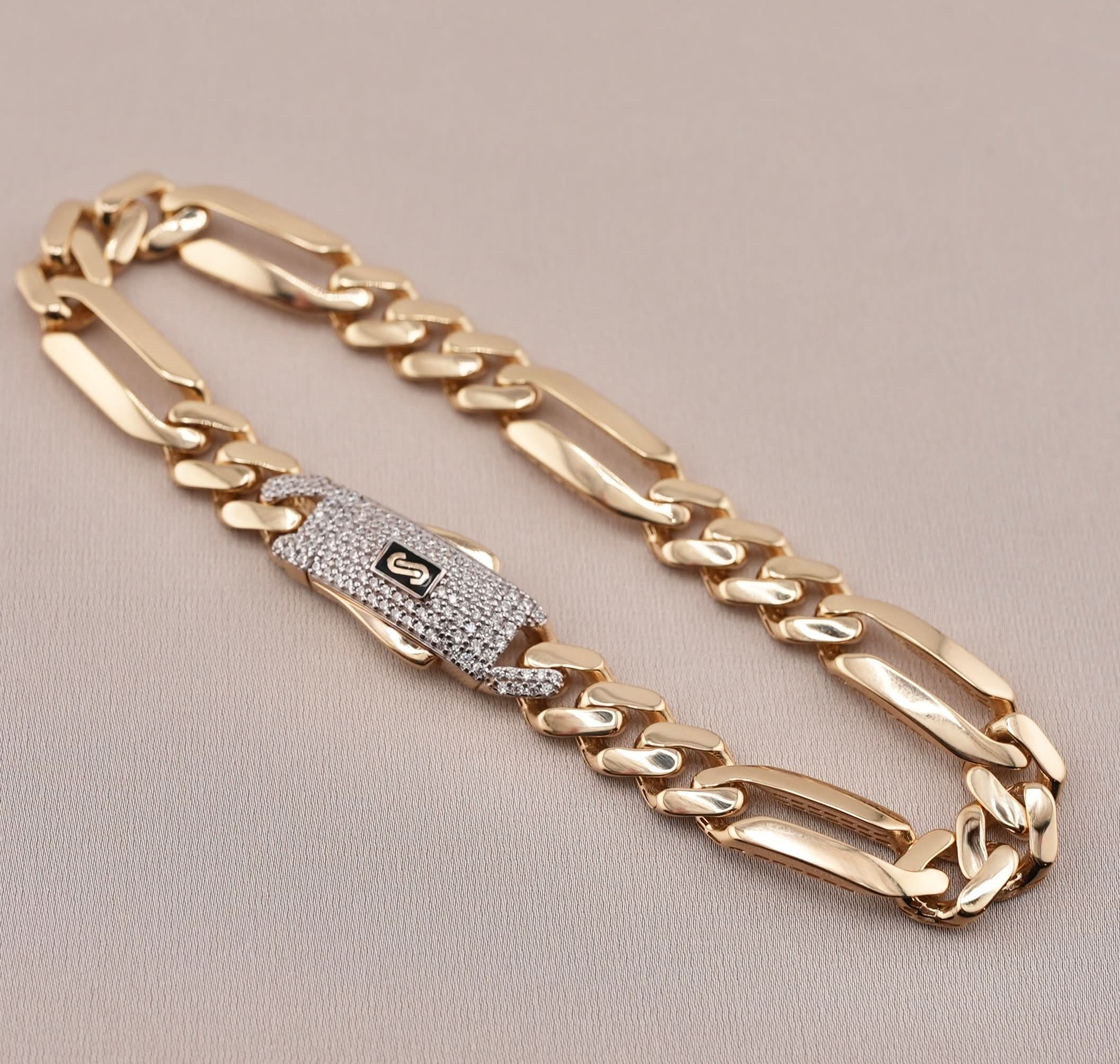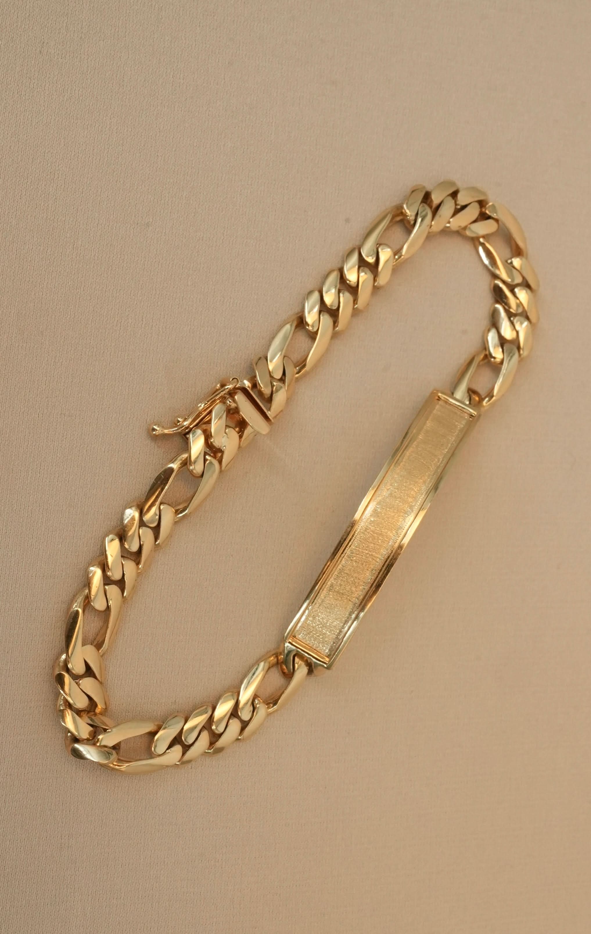 14K Gold Hollow Monaco Figaro Bracelet 8mm