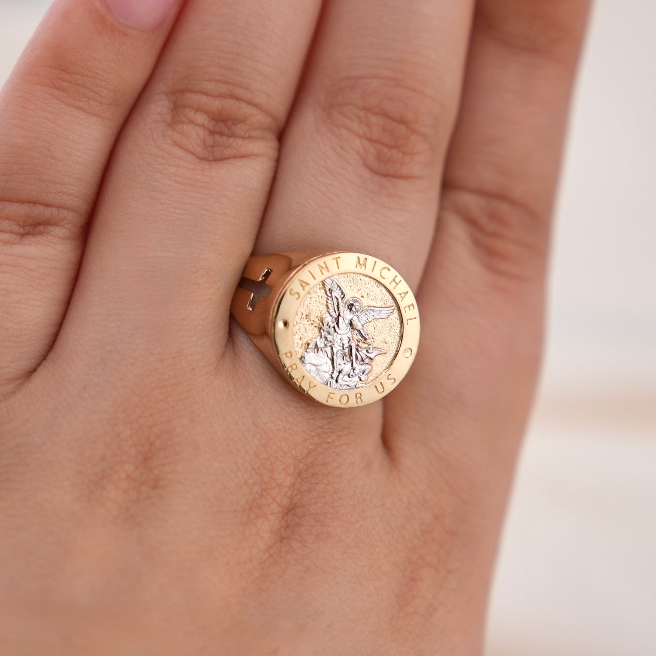 14k Gold Saint Michael Ring