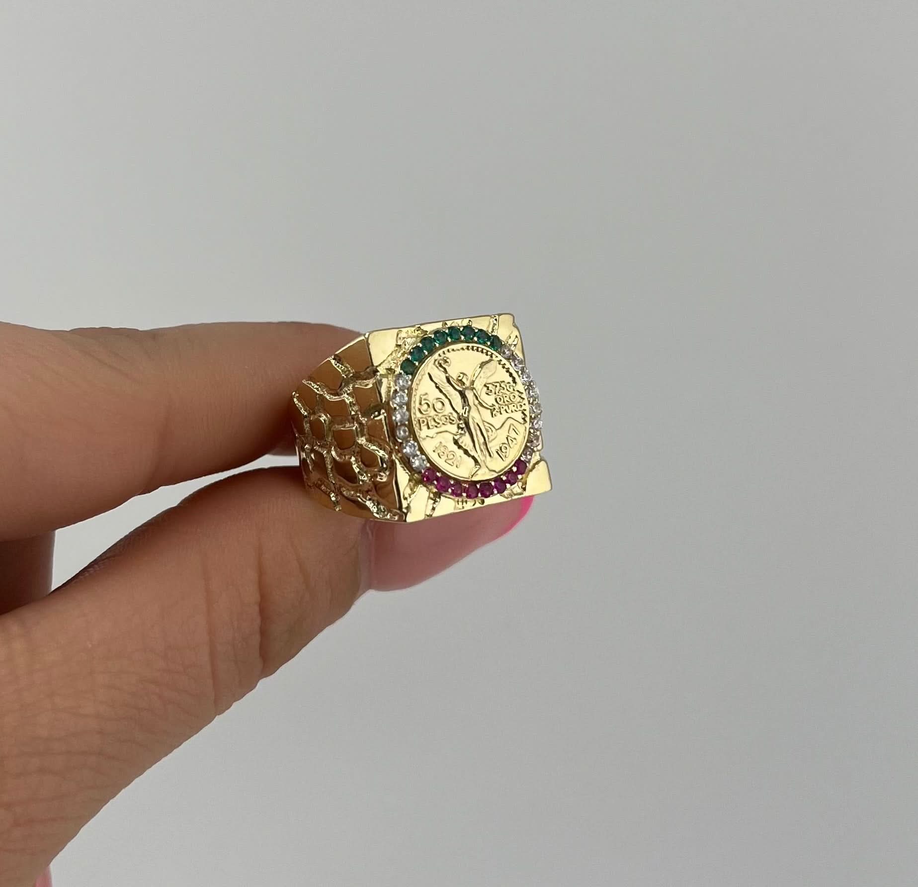 14k Gold Centenario Style Men’s Ring . 076