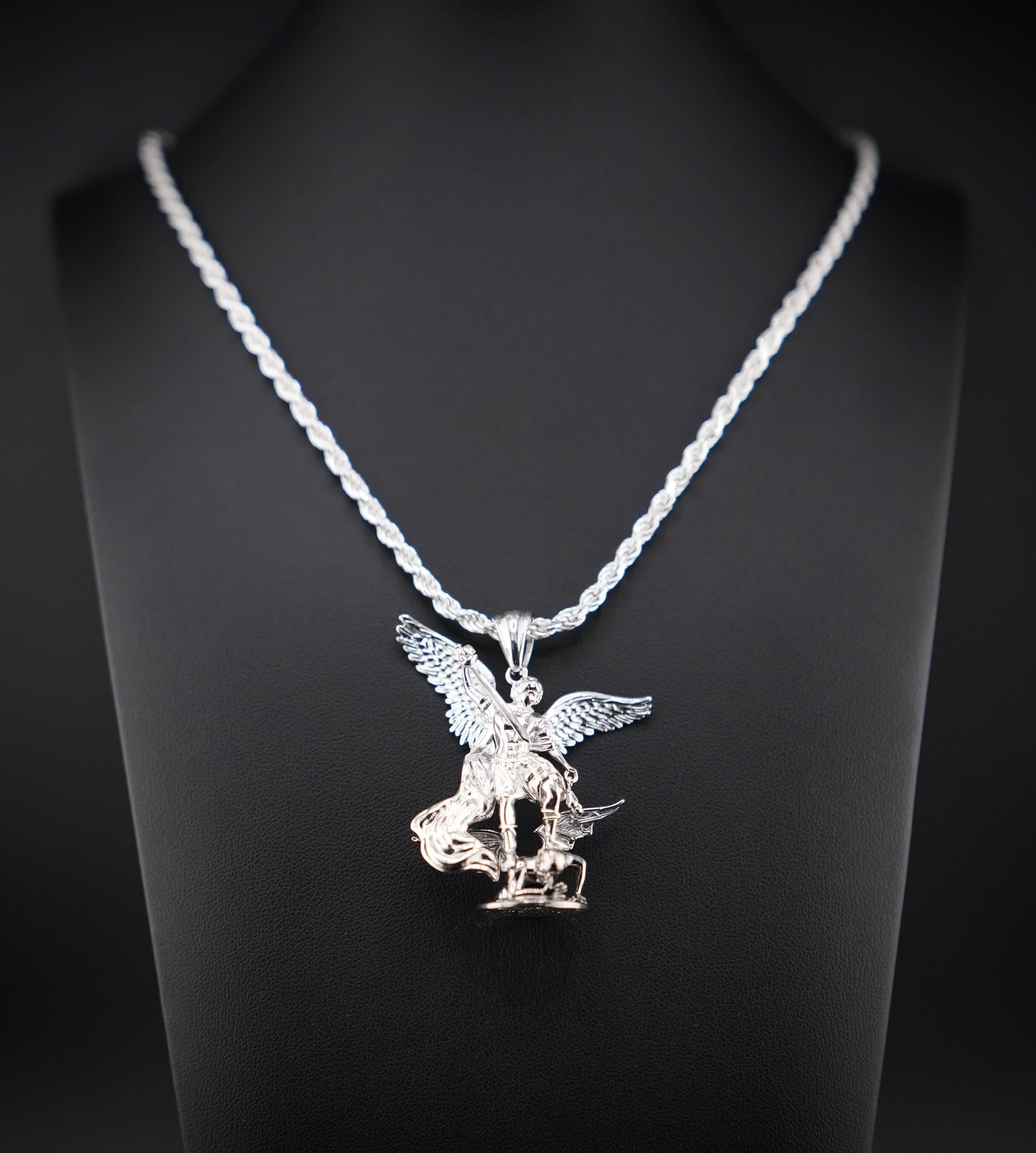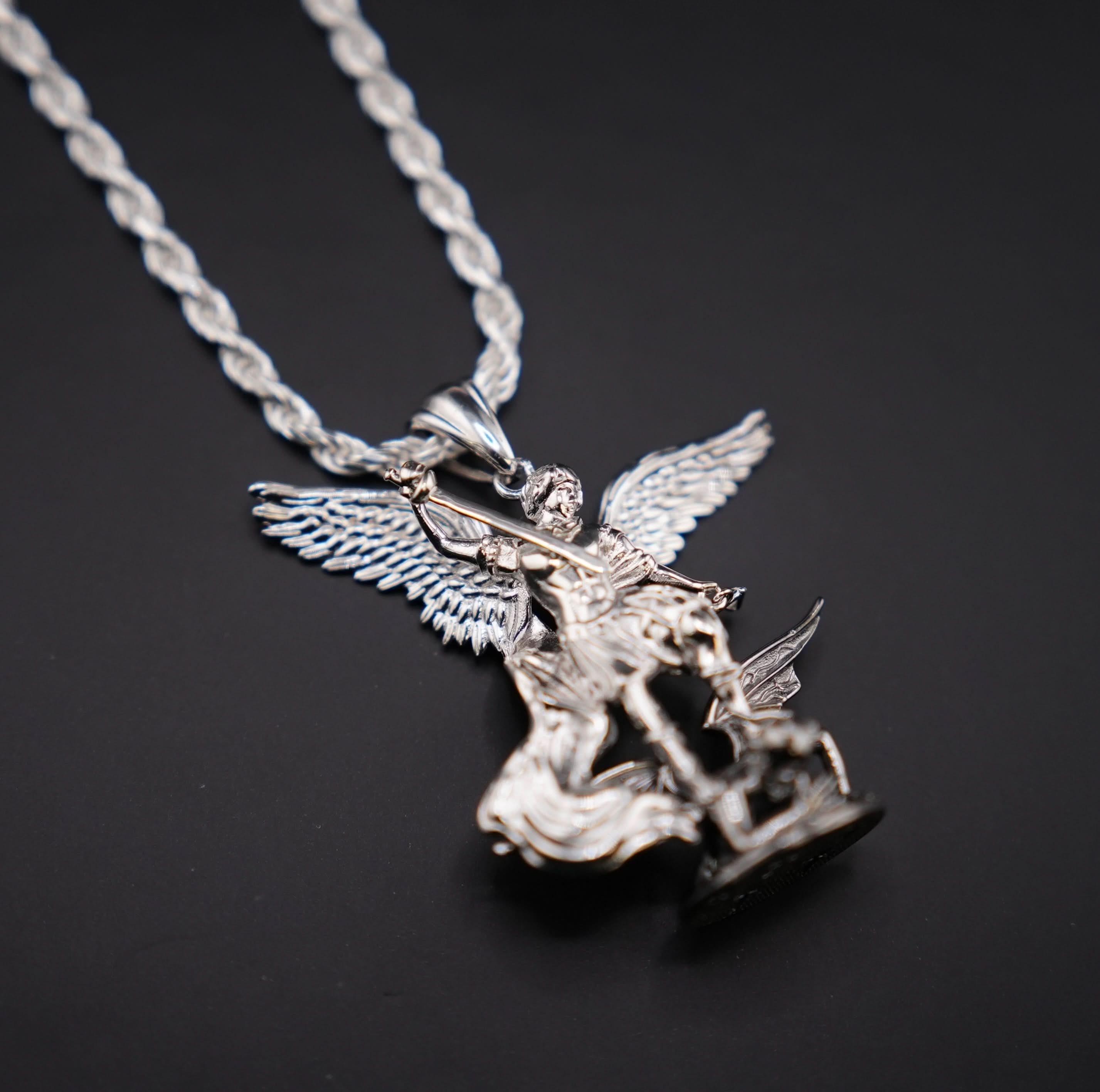 Silver 925 Large Saint Michael Archangel Pendant or Chain Set
