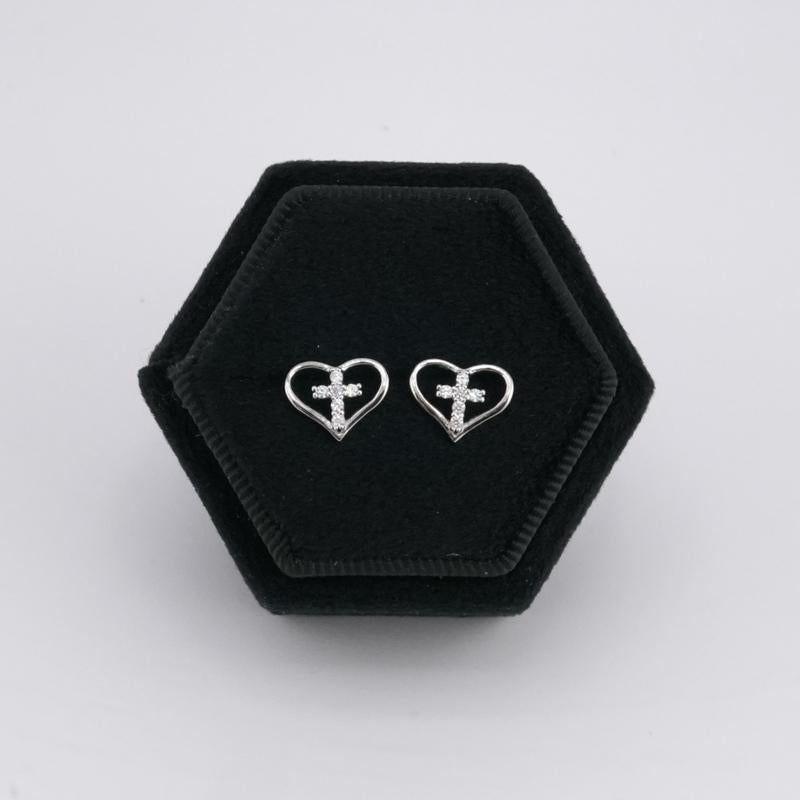 Silver 925 Heart & Cross Earrings